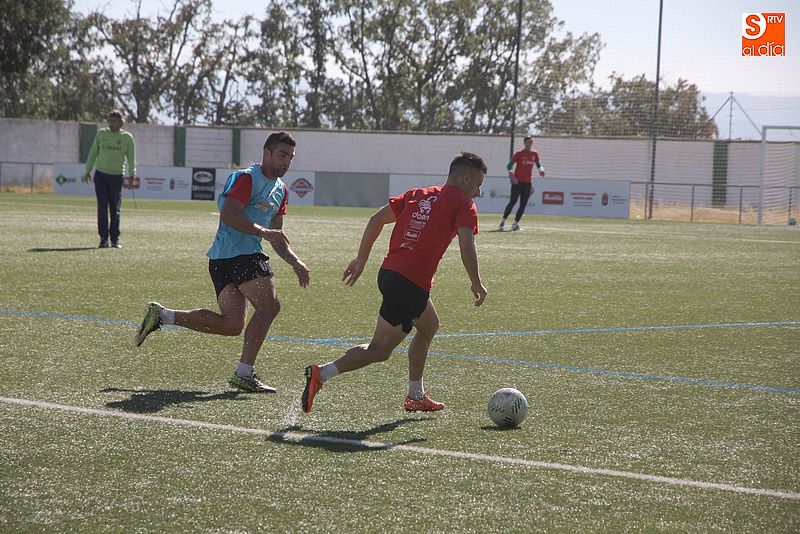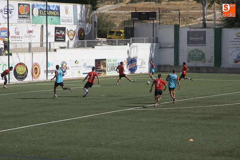 El Club Deportivo Guijuelo viajará este fin de semana para enfrentarse el próximo domingo al Club Atlético Osasuna B. El partido, que se disputará el próximo domingo 25 a las 12:00 horas, enfrentará al conjunto verdiblanco contra un nuevo filial, tras la victoria frente al Valladolid B del pasado domingo. El equipo de Mateo García se encuentra en un buen momento, en el que está adaptándose a la competición y mejorando su juego. El técnico del conjunto chacinero se mostró muy optimista y señaló que ganar siempre mejora el ambiente en el vestuario: "Cuando se gana se trabaja mucho mejor, es algo evidente. El equipo va a más cada día y estamos muy contentos por ello. La semana de entrenamientos está siendo muy buena, y nos estamos recuperando del exigente calendario de las últimas semanas. Ahora estamos concentrados en el viaje para jugar contra el Osasuna B. En esta categoría ya es difícil mantener la portería a cero dos jornadas seguidas, no digamos ya victorias consecutivas, por lo que iremos a por todas". En el entrenamiento, se comprobó que se están probando varias opciones con 4 y 5 defensas, algo que explicó García: "Todos los entrenadores tenemos varios planes que vamos usando según las circunstancias. Hoy hemos estado probando un 5-3-2 para cuando sea necesario. Ya lo probamos al final del partido del Lealtad y los estamos perfilando. Además, el tener una plantilla polivalente ayuda, puesto que tenemos muchos jugadores que son válidos para varias posiciones y podemos experimentar mucho. Me gusta que todos participen mucho porque da muchas opciones de calidad". En cuanto al rival, el técnico señaló que los filiales siempre son rivales duros: "Se manejan bien en casa y si consiguen espacio son muy peligrosos. Esperamos un buen rival, que de juego y mueva la pelota, será probablemente un buen partido".