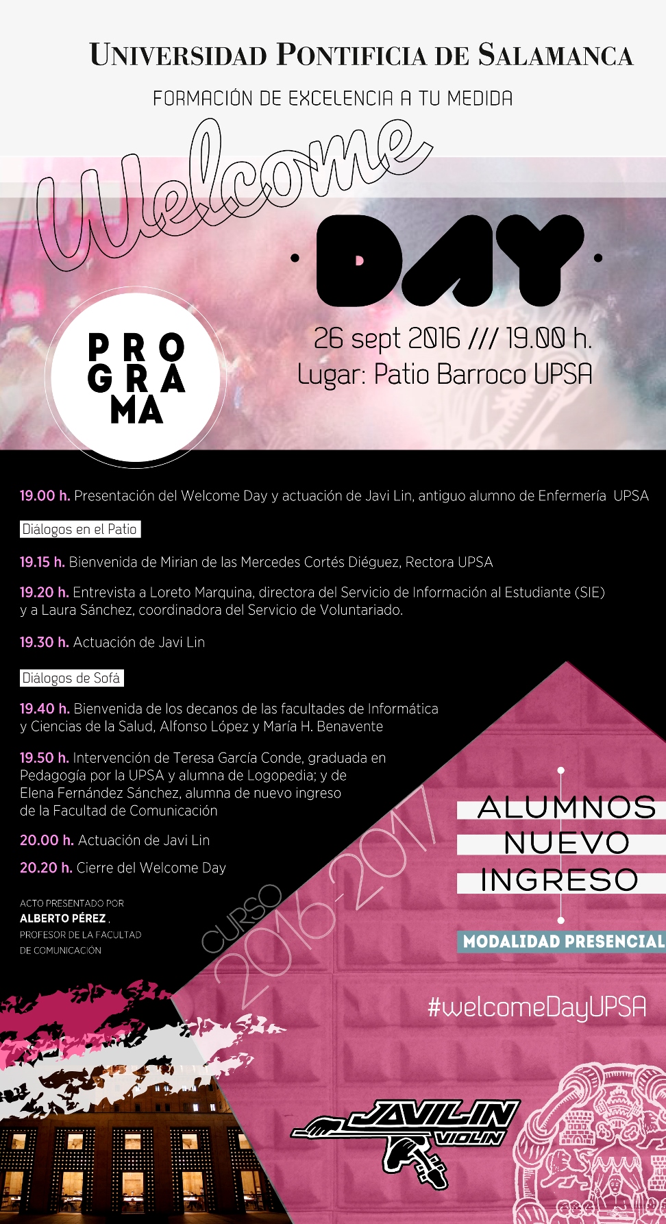 El acto contará con unas palabras de bienvenida de la rectora, Mirian de las Mercedes Cortés Diéguez, además de las intervenciones de los decanos de Informática y Ciencias de la Salud, Alfonso López Rivero y María H. Benavente Cuesta. Junto a ellos también aportarán su testimonio la responsable del Servicio de Información al Estudiante, Loreto Marquina Torres, y la coordinadora del Servicio de Voluntariado, Laura Sánchez Blanco. En la sesión, participará además Teresa García Conde, alumna de la Facultad de Educación que actualmente se forma en la UPSA, y Elena Fernández Sánchez, estudiante de nuevo ingreso que comienza ese mismo día sus estudios en la Facultad de Comunicación.