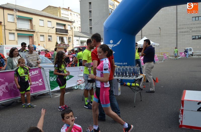 Las pruebas infantiles han tenido lugar en la Plaza de Santa Teresa, donde se había preparado un circuito adaptado a las edades de los pequeños ciclistas, entre los que hay que destacar la presencia la Escuela de Ciclismo Moisés Dueñas, aunque han sido bastantes los participantes de otras localidades cercanas que se han desplazado hasta Béjar para disfrutar de la bicicleta en esta mañana de domingo.