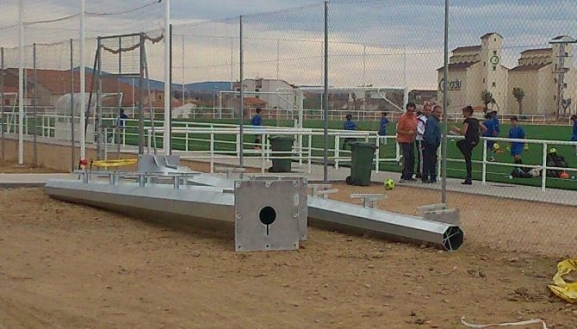 La familia del Ciudad Rodrigo Club de Fútbol ve cómo ya es inminente que puedan disfrutar de la luz artificial en el campo de césped construido el año pasado en la zona de la Muge. En la jornada del lunes, llegaron hasta la zona las estructuras que conformarán las torretas de luz que permitirán desarrollar entrenamientos en ese campo cuando caiga la noche.