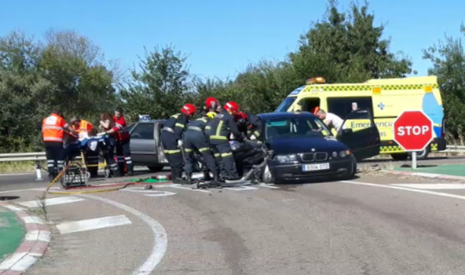 Cuatro evacuados al Hospital tras una fuerte colisión en el cruce de la Carretera de Cáceres