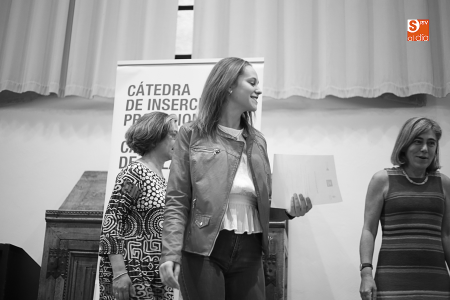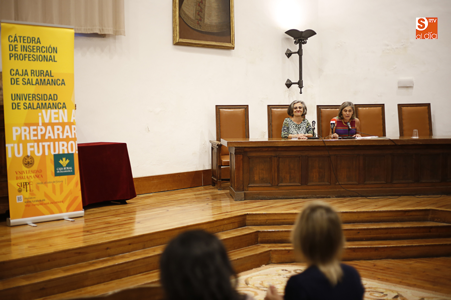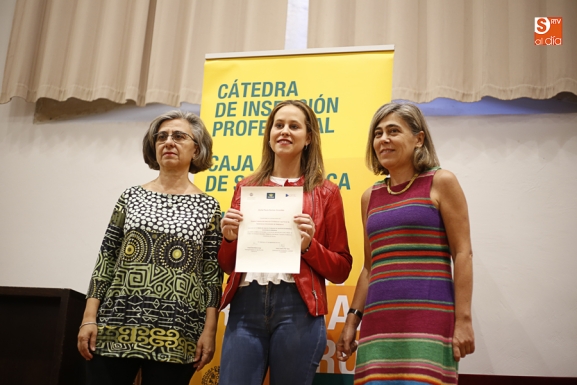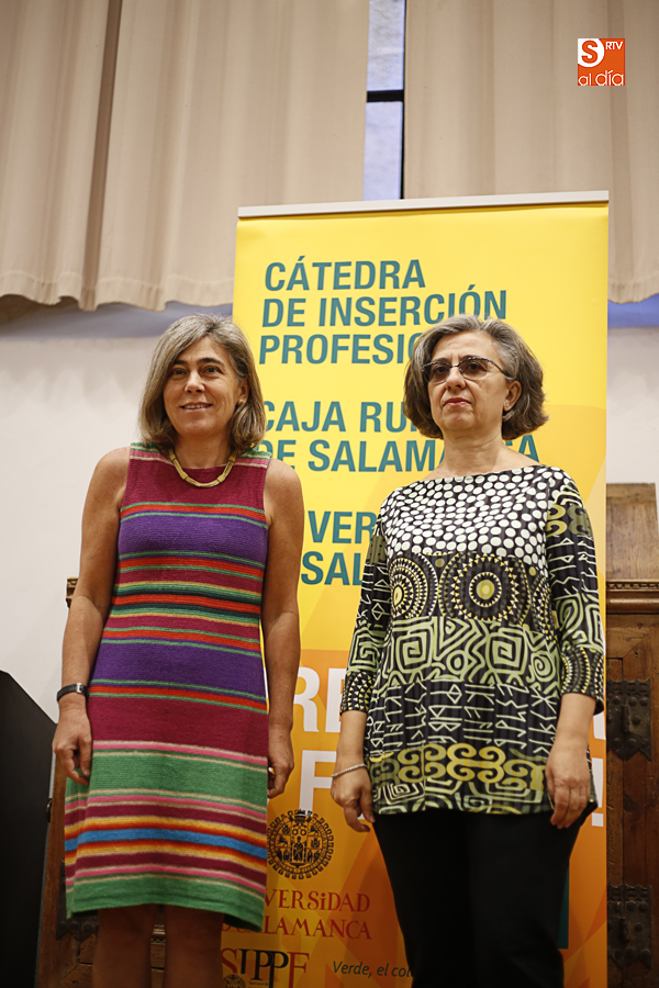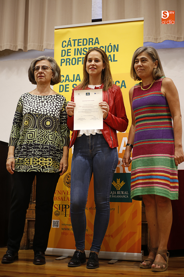La vicerrectora de Atención al Estudiante y Extensión Universitaria, Cristina Pita, y la directora general de Caja Rural de Salamanca, Isabel Martín Arija, han hecho entrega en la mañana de hoy en el Aula Salinas de las Escuelas Mayores del Premio convocado por la Cátedra Caja Rural de Salamanca-Universidad de Salamanca.
