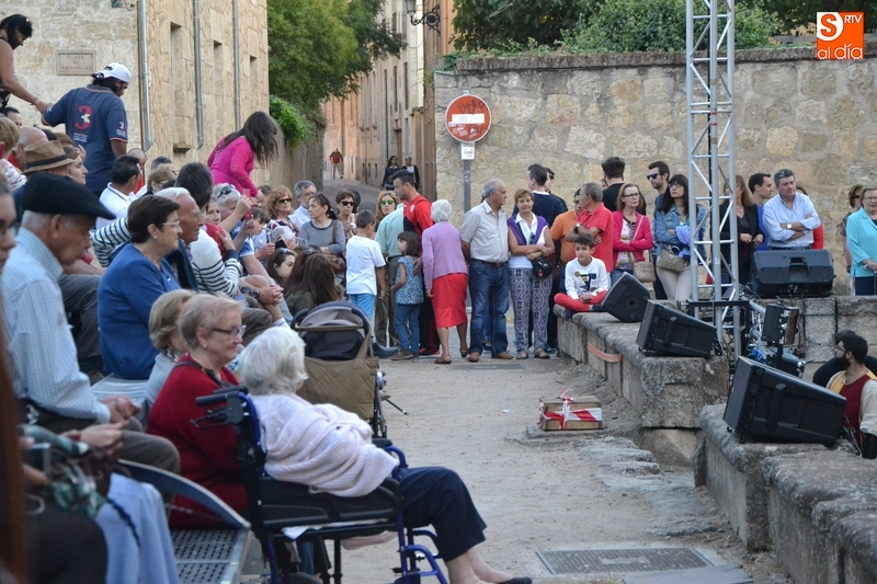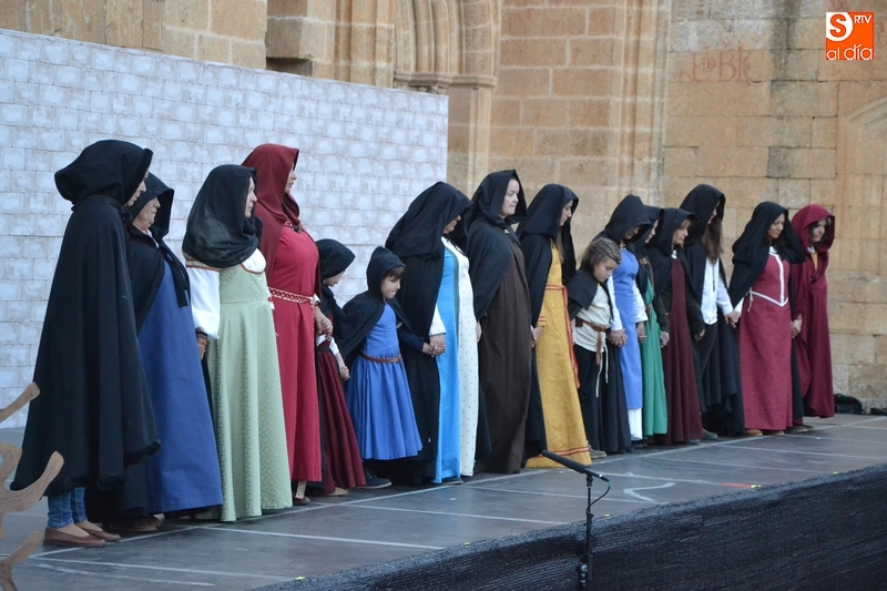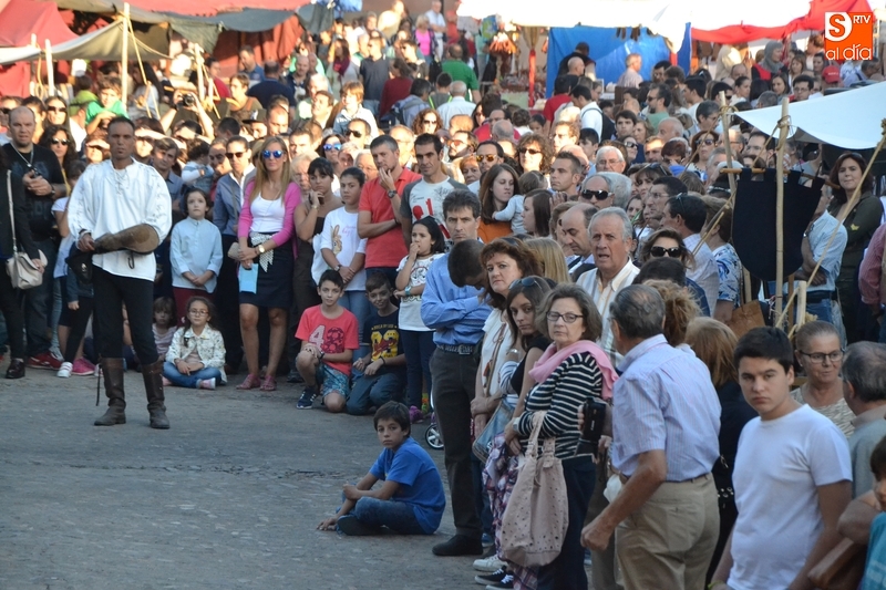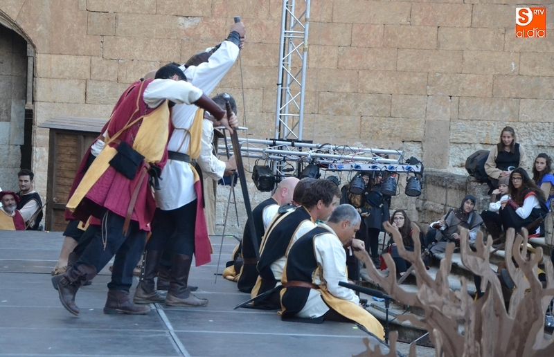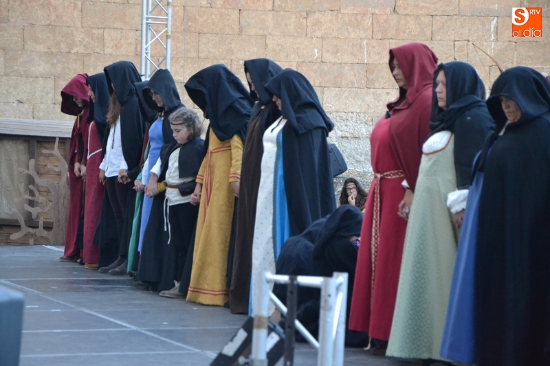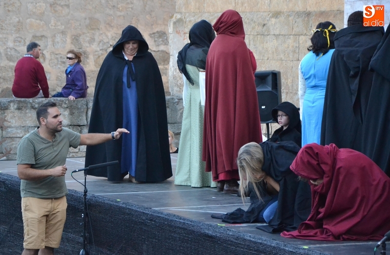 El otro atractivo de la tarde sabatina en la Feria fue inesperado: el ensayo general de la obra de teatro La Conjura de Ciudad Rodrigo programada para el momento en que cayera la noche junto a la Catedral de Santa María.