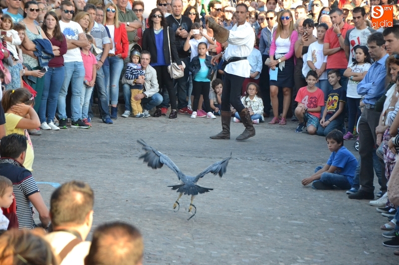 Entre los atractivos de la programación del evento, figuran hasta cuatro exhibiciones de cetrería, a cargo del grupo Las Águilas de Valporquero, que tienen una exposición permanente de aves en la Plaza del Castillo, en este caso, junto a la antigua puerta de entrada al Parador.