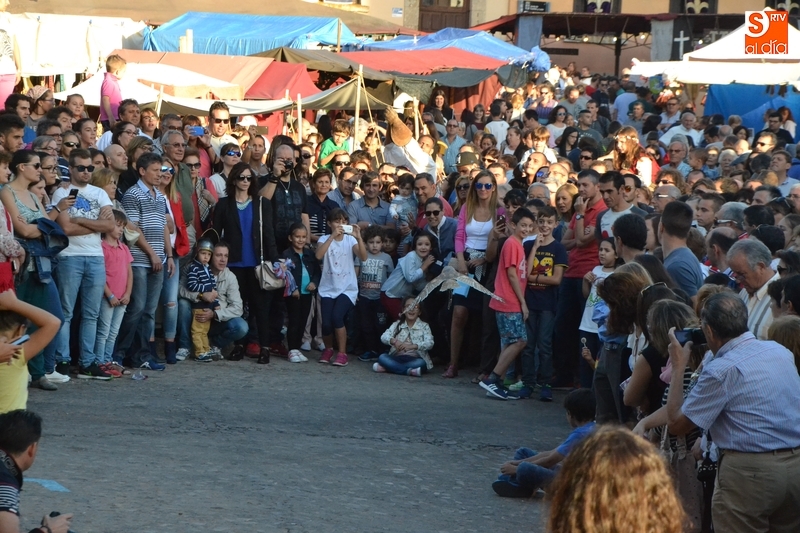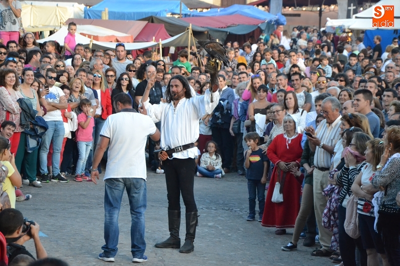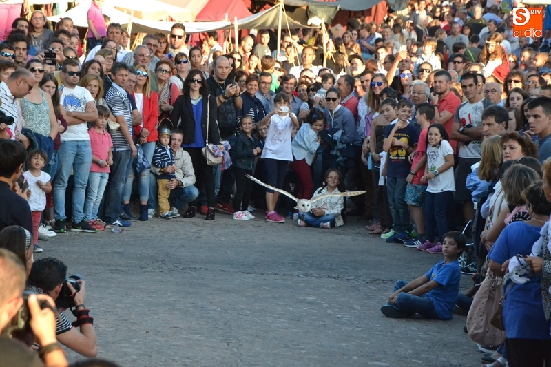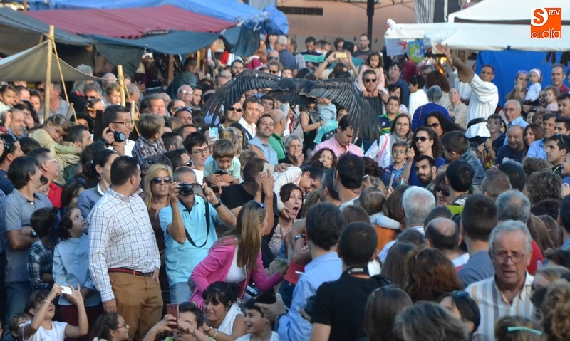 La multitud queda prendada de las aves de la Feria Medieval   | Imagen 1Entre los animales que se emplearon, llamaron la atención, por los vuelos cruzados que realizaron, dos Águilas Harris, que también pasaron entre las piernas de varios espectadores del público. La exhibición recibió numerosos aplausos, repartiéndose a continuación el público por toda la Feria, recorriendo los puestos, disfrutando de los juegos (pensados especialmente para niños) o tomando algo en el mesón (aquellos que, o desconocen los precios, o se lo pueden permitir, porque la Feria será medieval pero los precios son 'del futuro').