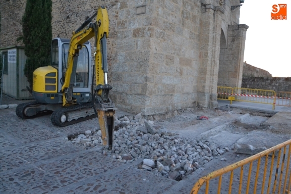 Pasada la Feria Medieval -que ha alterado el ritmo del centro histórico de Ciudad Rodrigo-, desde la mañana del lunes vuelve a estar cortada al tráfico rodado la zona del Registro, al retomarse las obras de construcción de un carril de baldosas de granito.