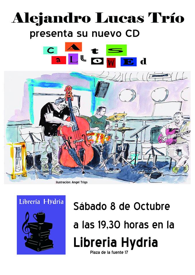 Alejandro Lucas Jazz Trío ofrecerá un recital en la librería Hydria, para presentar su nuevo disco: "Cats allowed". Será este sábado día 8, a las 19,30 horas, con entrada libre.
