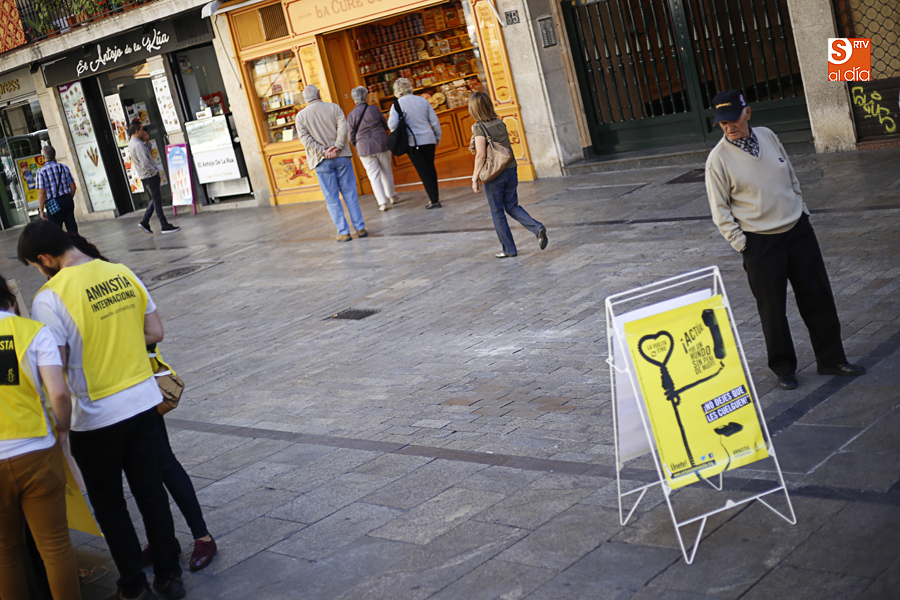 Recogida de firmas en el centro de Salamanca coincidiendo con el Día contra la Pena de Muerte, en el que se suceden actos reivindicativos en todo el mundo