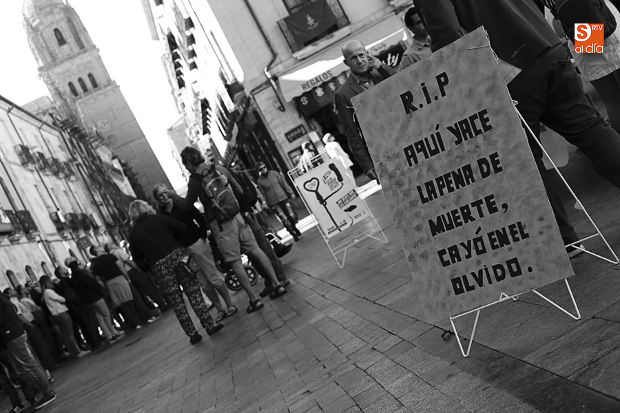 El Grupo de Amnistía Internacional de Salamanca, con motivo del Día Internacional contra la Pena de Muerte, ha recogido firmas contra dicha pena y ha repartido información entre la ciudadanía para sensibilizar sobre este problema en la Rúa.