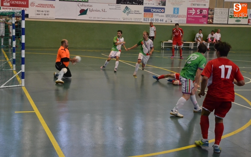 Tras pedir tiempo muerto los mirobrigenses, las aguas volvieron a su cauce, acabando la primera parte con otras dos oportunidades locales, ambas lejanas, pero buenas, de Cholo (su tiro se fue rozando cerca de la escuadra derecha) y Raúl (su disparo raso lo cogió el portero).