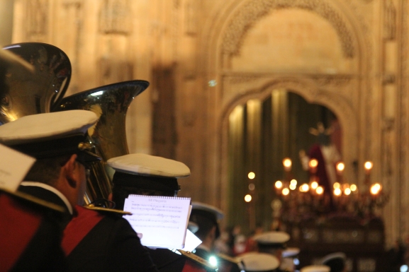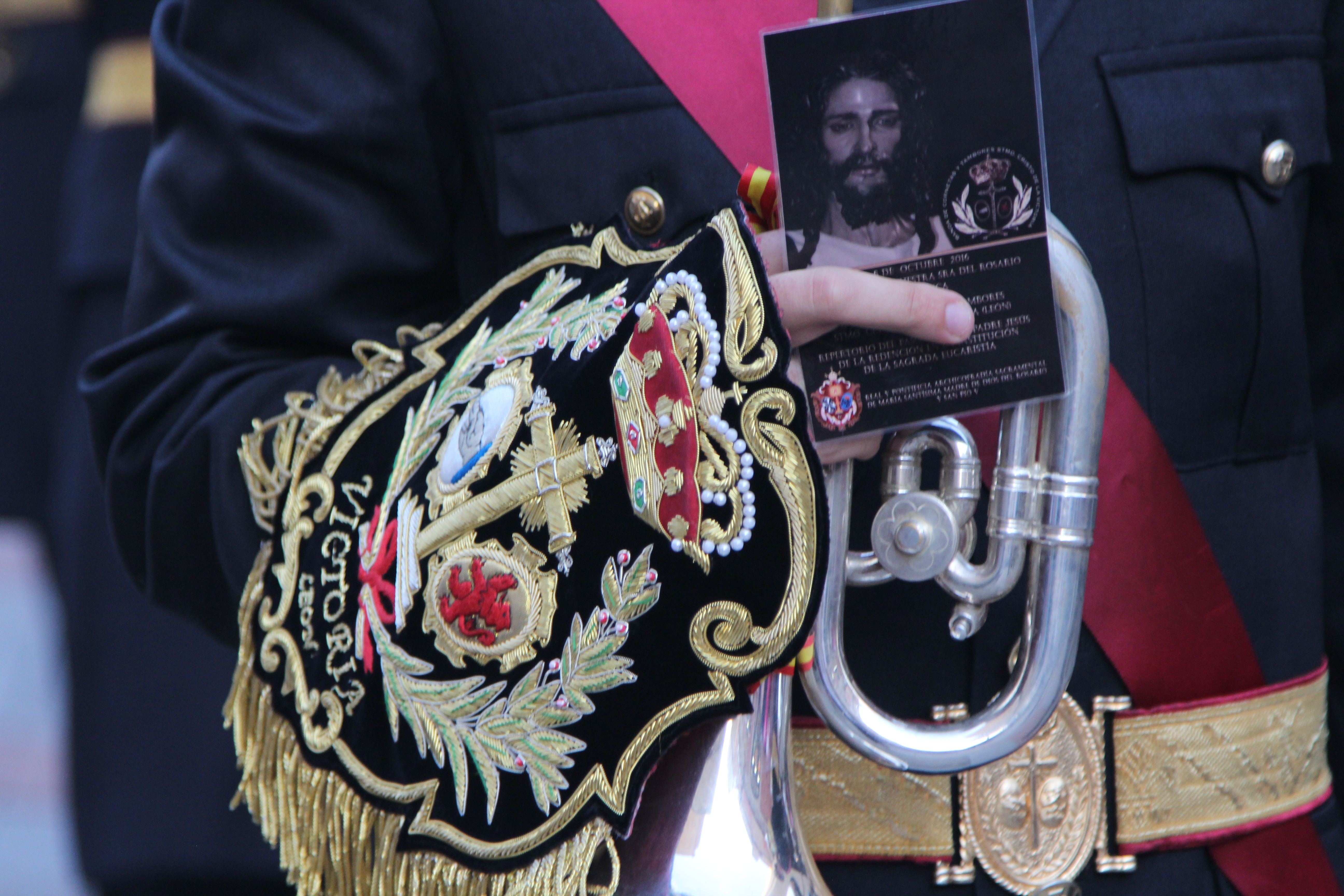 Los encargados de poner música a lo que se vivió ayer junto a Jesús de la Redención vinieron desde León. La Banda de Cornetas y Tambores Santísimo Cristo de la Victoria supo poner el punto musical perfecto para el día excepcional que se celebraba. Más de 120 músicos tocaban las marchas tan conocidas como Suenan "Medea", "El Desprecio de Herodes", "Llora María" o "Caridad".