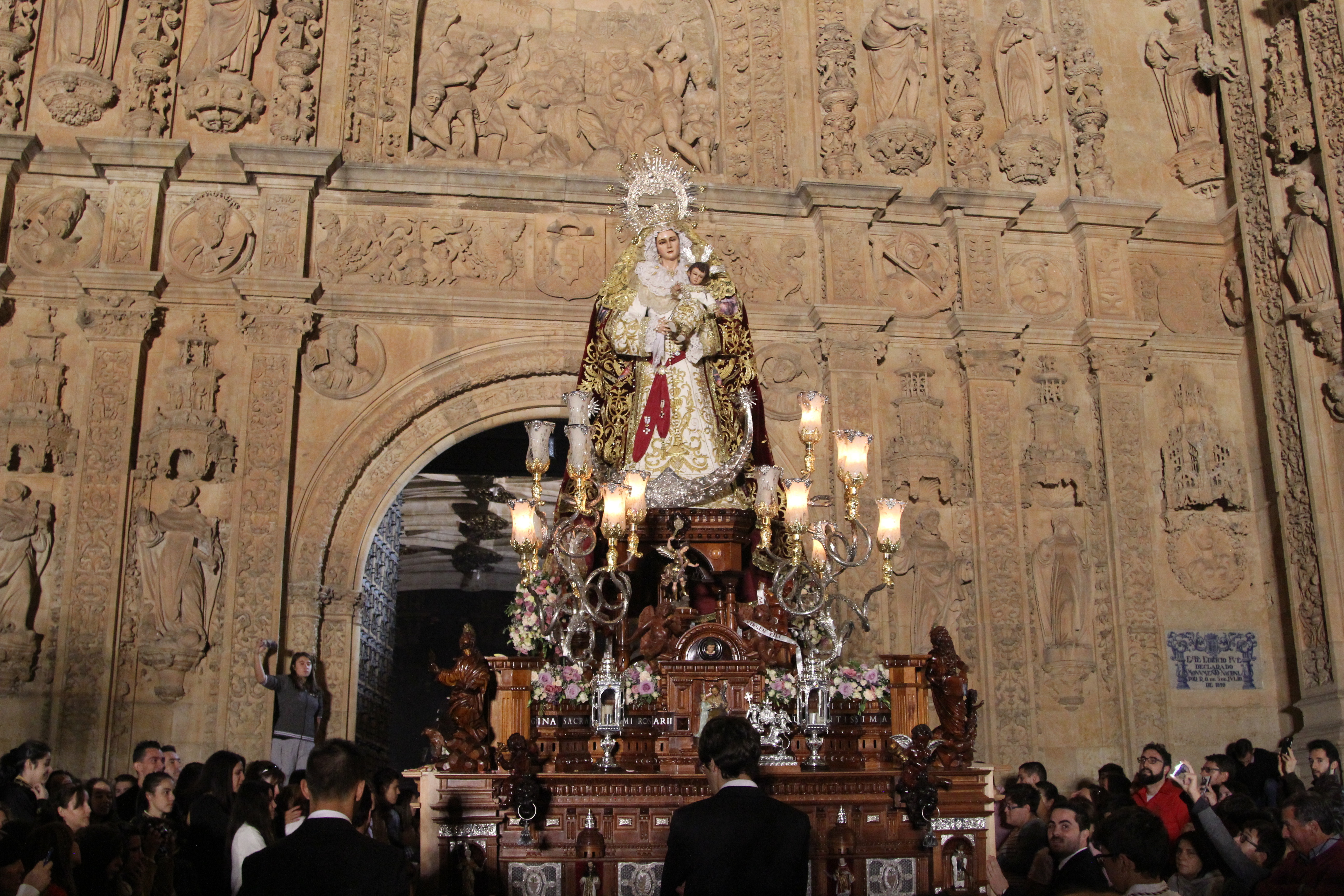 En la tarde de ayer estuvo llena de momentos únicos que probablemente no se volverán a repetir ningún otro otoño. Salamanca quería ver desfilar la talla que llegó desde Andalucía hace poco más de un año por las estrechas calles que marcan el recorrido cada Octubre de la Virgen del Rosario.