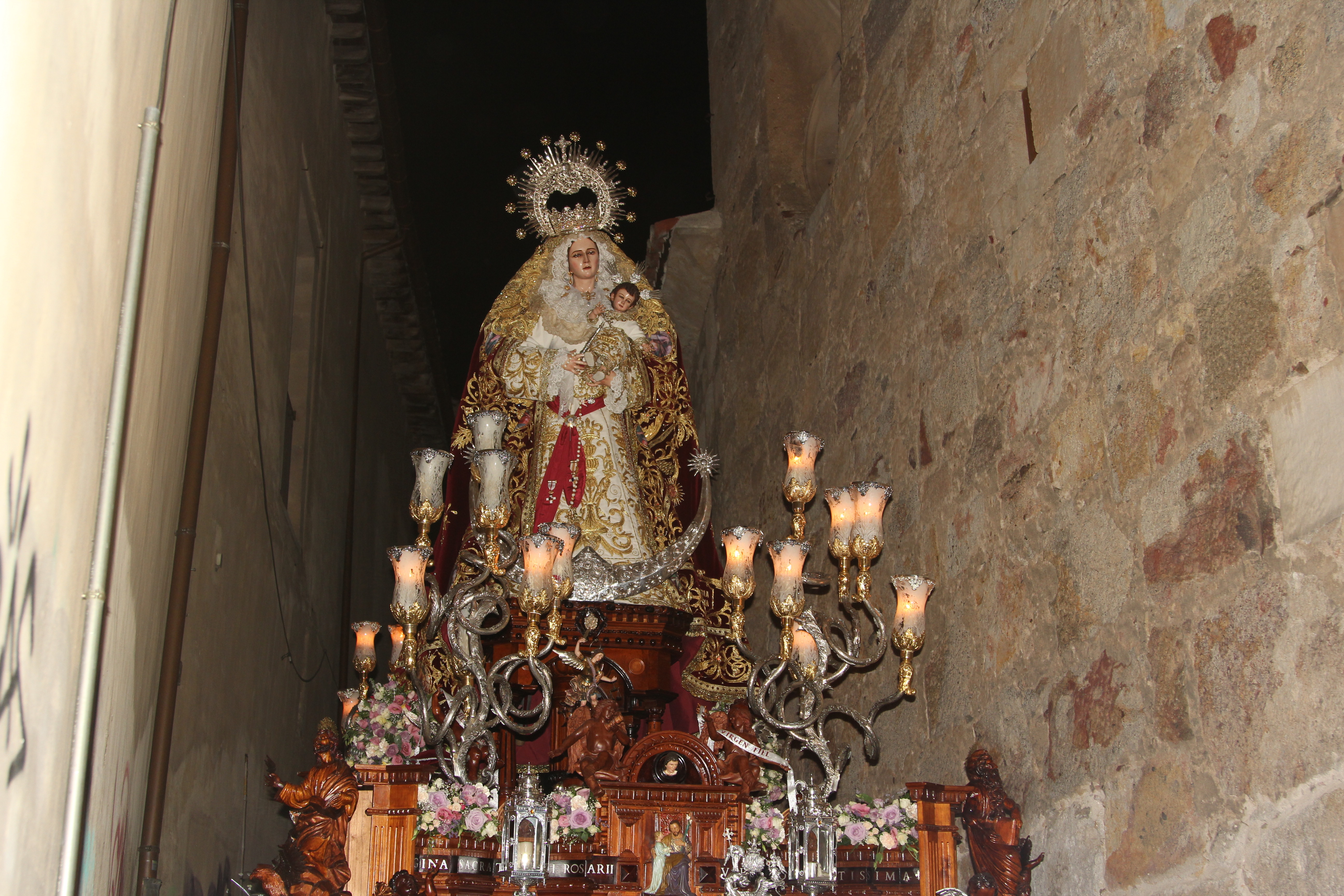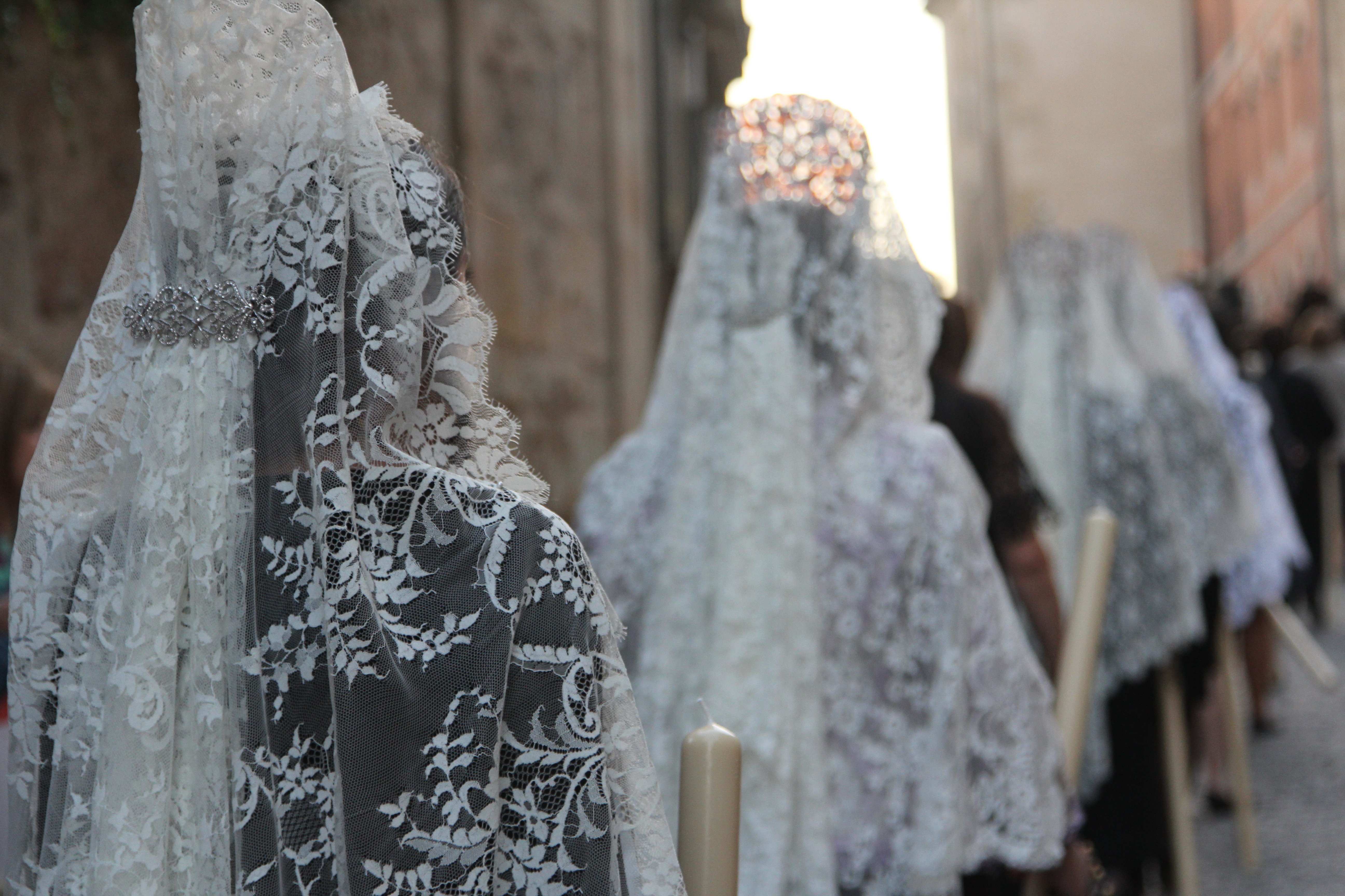 La Virgen del Rosario, que este año cedió el protagonismo a su hijo aunque cada año va ganando fieles y devotos que la acompañan en su cortejo. Las filas de mantillas blancas sobre todo en la noche junto a los edificios históricos dejaban estampas de gran belleza.
