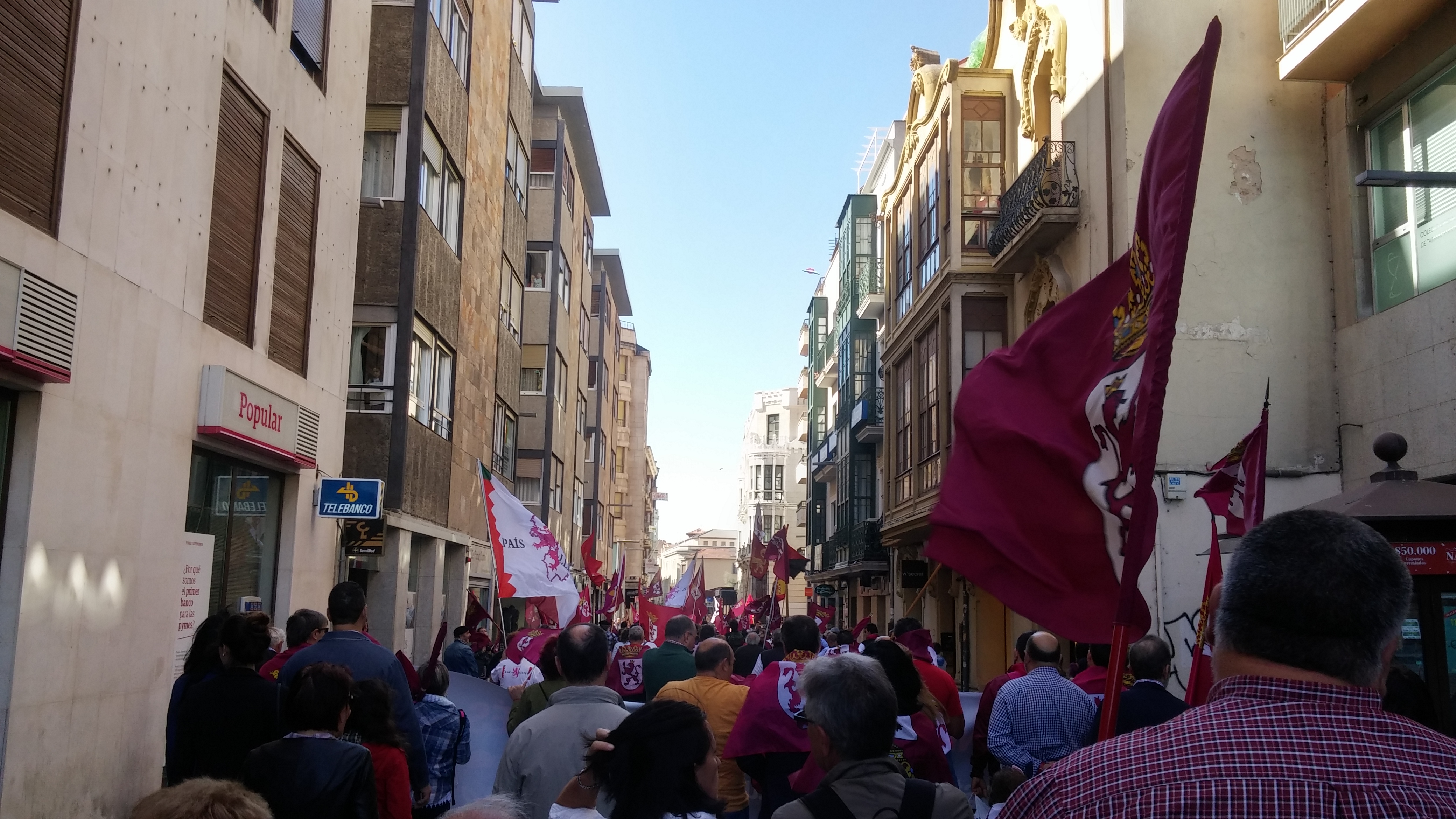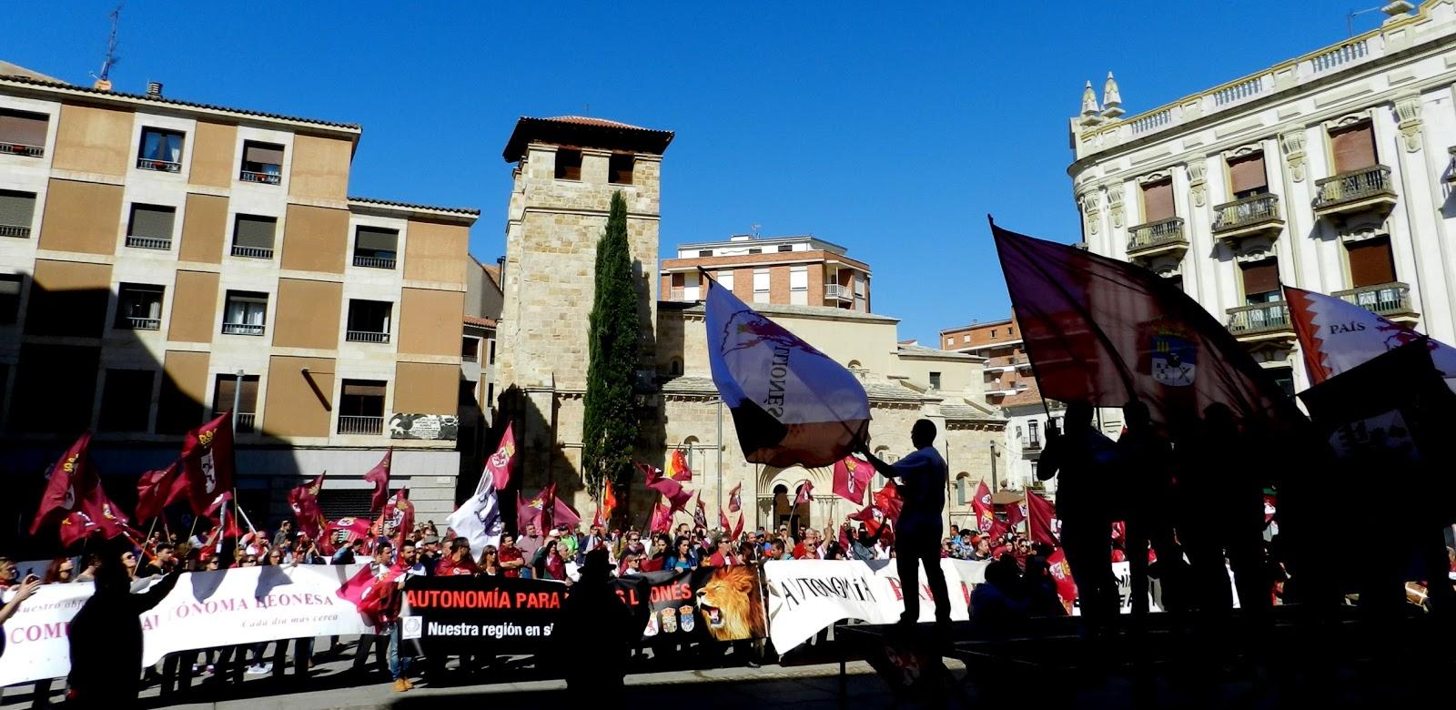 Las calles de Zamora se tiñeron ayer de color púrpura, con una marea de más de mil personas exigiendo un trato digno para la Región Leonesa. Convocada por la Plataforma por la Autonomía del País Leonés, la manifestación se inició con sones de gaita charra y tamboril en la Plaza de Alemania, siguiendo por la avenida Alfonso IX para tomar posteriormente la calle Santa Clara. Los gritos de "Salamanca, Zamora, León, somos región", o los de "Autonomía País Leonés", se hicieron presentes y casi permanentes, danzando junto a los acordes de la música tradicional. Estas proclamas y sones, tras el paso por la calle Benavente, pasaron a inundar la calle San Torcuato, adornando con el colorido de las banderas el bello palacio de los Momos, girando la comitiva en la Plaza de Sagasta hacia Santa Clara nuevamente, para finalizar en la Plaza de la Constitución. En ésta, junto a la Subdelegación del Gobierno en Zamora y frente a la iglesia de Santiago del Burgo, se leyó el manifiesto de la manifestación.