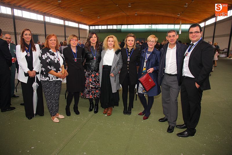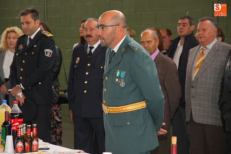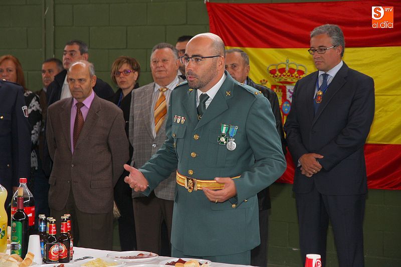 torno a 250 personas. La Corporación Municipal, encabezada por el alcalde, Julián Ramos, acudió acompañada de la práctica totalidad de los alcaldes de la comarca. El teniente, Fernando Pinto, agradeció a los presentes su asistencia y manifestó su intención de seguir trabajando por la seguridad y bienestar de Guijuelo y su comarca.