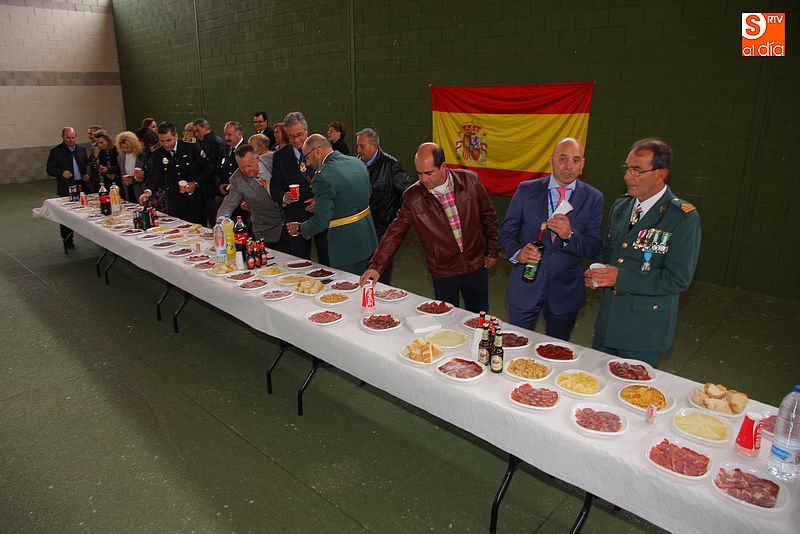 Un año más, Guijuelo cumplió con la tradicional fiesta de la Virgen del Pilar que sirve de homenaje también al Día de la Hispanidad y las Fuerzas Armadas. Tras un oficio religioso en la parroquia local, los miembros de la Guardia Civil del puesto de la villa ofrecieron el habitual convite en el recinto ferial, donde se dieron cita en