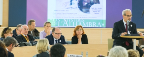 El rector de la Universidad de Salamanca, Daniel Hernández Ruipérez, y el vicerrector para la Conmemoración del VIII Centenario, Mariano Esteban de Vega, han participado en los actos de celebración del Día del Español en Naciones Unidas, celebrado en la Oficina de las Naciones Unidas en Ginebra (UNOG).