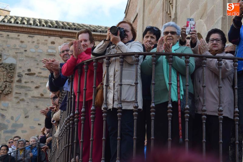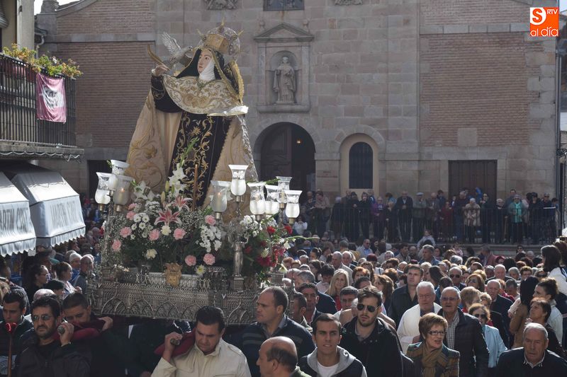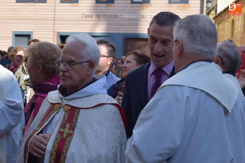 A pesar de tratarse este viernes 14 de octubre de un día laborable, ninguno de los albenses quiso perderse la salida de su patrona, y por eso, niños, jóvenes y adultos se agolparon en torno a la plaza que lleva el nombre de la santa para arropar la imagen de Santa Teresa de Jesús en su salida de clausura, en lo que es, sin duda, uno de los actos más solemnes y emotivos entre los vecinos de Alba de Tormes.