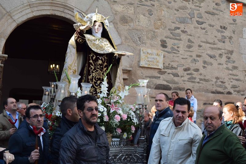La salida de clausura de Santa Teresa de Jesús, patrona de Alba de Tormes, marcó el inicio oficial de las fiestas patronales de octubre de la villa ducal. Tras varios día de inestabilidad climatológica, el tiempo respetó para que todos los albenses pudieran acercarse a la Plaza de Santa Teresa y ver salir a su patrona de clausura.