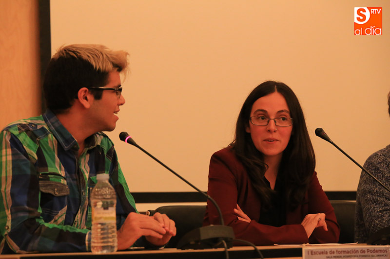 En la primera mesa redonda, Beatriz Jimeno, responsable de feminismo en Podemos y diputada en la Comunidad de Madrid, defendía la necesidad de que las mujeres se incorporen a este proyecto político, para "construir un futuro igualitario". Por otra parte, explicaba que este tipo de Escuela de Formación es buena, puesto que supone un "espacio de interacción entre los cargos y los militantes".