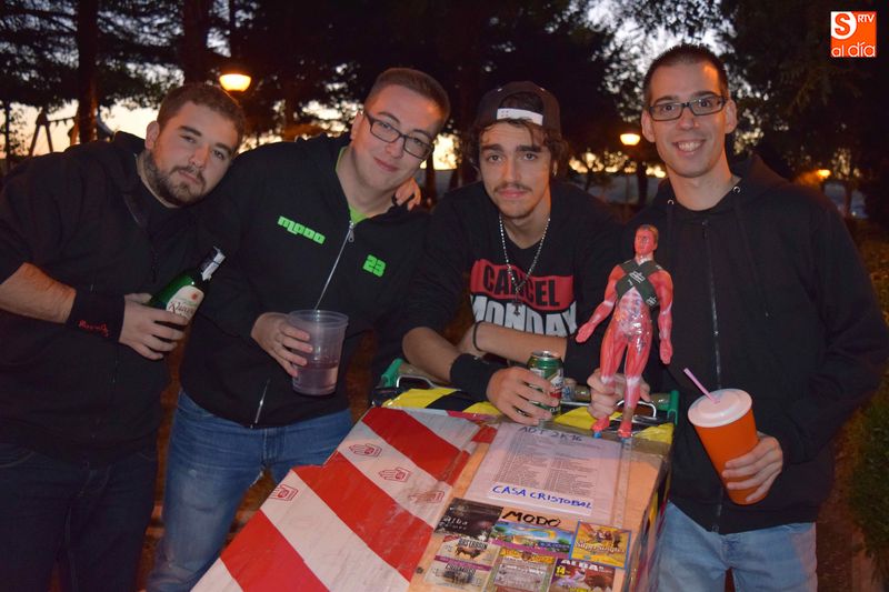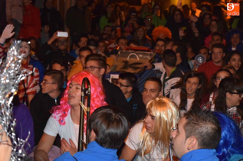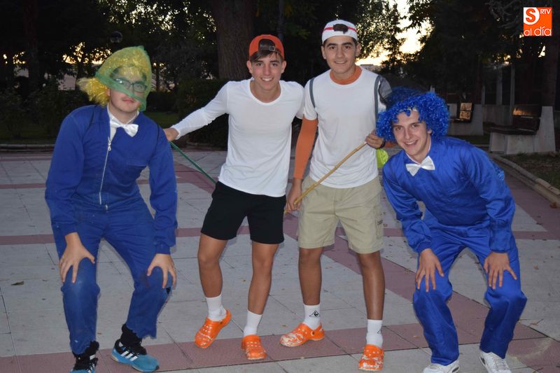 Los más jóvenes dieron el pistoletazo de salida anoche a sus propias fiestas de octubre 2016 con el desfile de peñas y el posterior chupinazo celebrado en el parking de la calle Hospital. Ataviados con la indumentaria propias de las fiestas unos, y otros disfrazados, peñas y jóvenes de Alba de Tormes dieron de esta manera la bienvenida al primer día de las fiestas patronales.