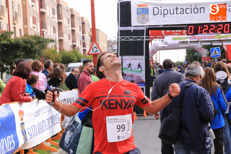 Los más rápidos fueron Jorge Nieto, en la categoría masculina, y Gema Martín, en la femenina. Lo más importante es que ambos atletas bajaron el crono de la pasada edición y se llevaron un suculento premio de 300 euros para cada uno al parar el tiempo en 1.07.41 en el caso de Nieto, y de 1.17.57, en el caso de la campeona salmantina. Los registros de 2015 estaban en 1.08.26, en hombres, y de 1.19.29, en féminas.