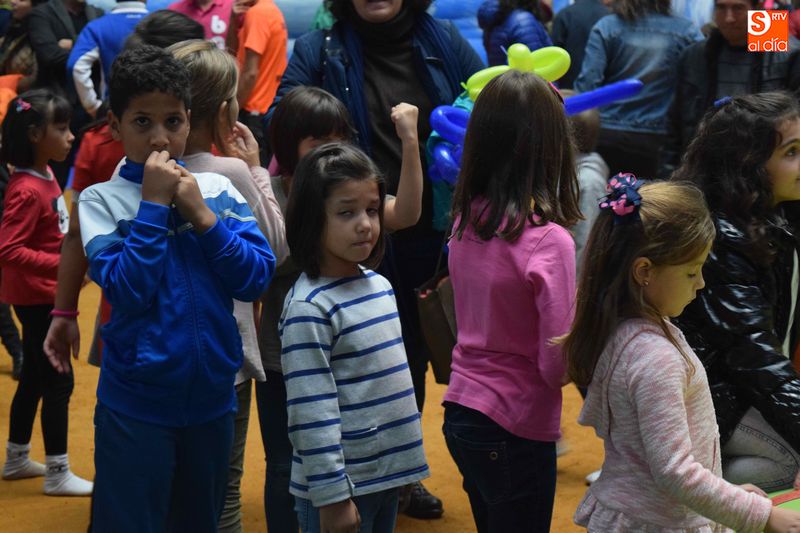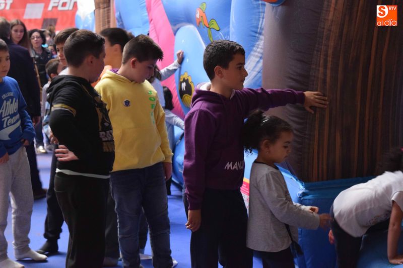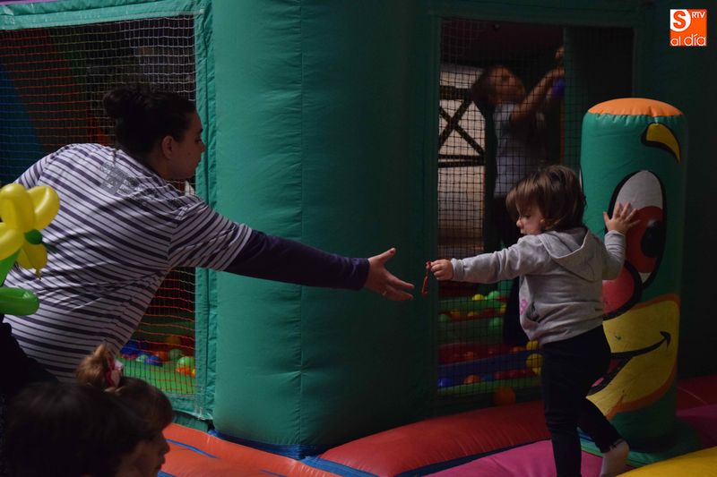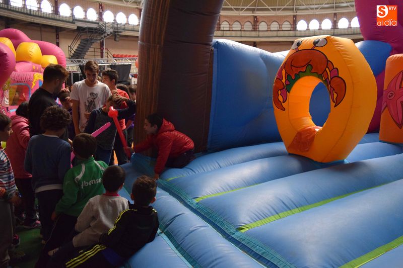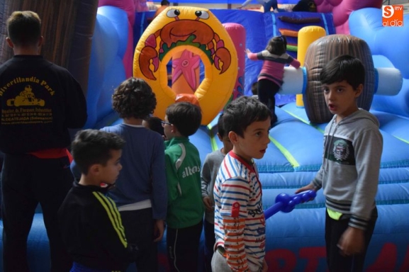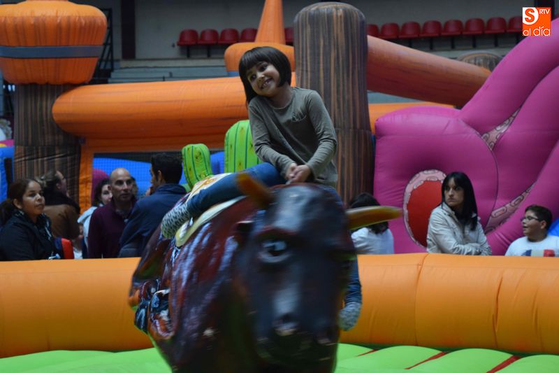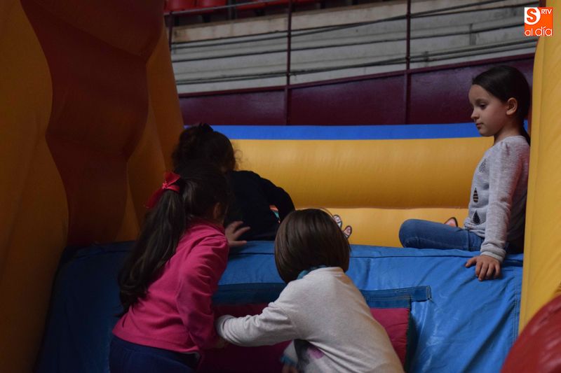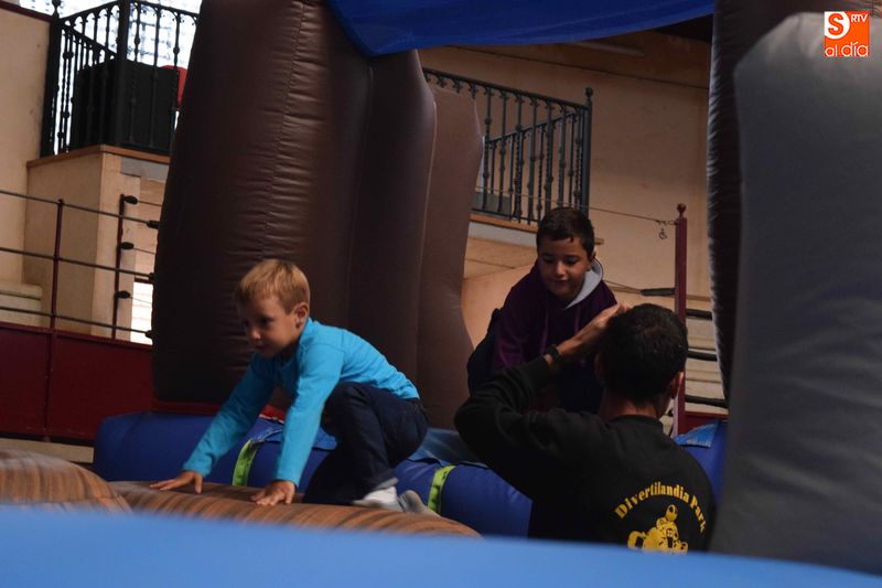 Los niños y niñas de Alba de Tormes disfrutaron de su día de las fiestas de octubre pasándoselo en grande con los hinchables, juegos, gigantes y cabezudos que albergó la Plaza de Toros debido a la inclemencias meteorológicas.
