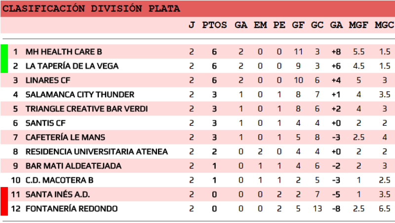 MH Health Care B, La tapería de la Vega y Linares CF, líderes en División de Plata, y Los Hombres de Paco y Mesón La Navilla, en Primera
