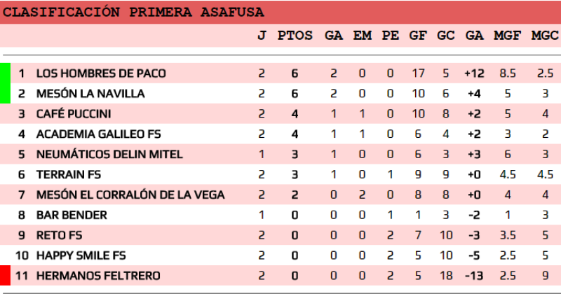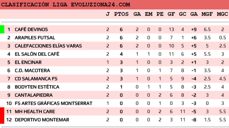 En la cuarta plaza se sitúa EL SALÓN DEL CAFÉ que venció este fin de semana y se puso con cuatro puntos en la clasificación. En la parte baja de
