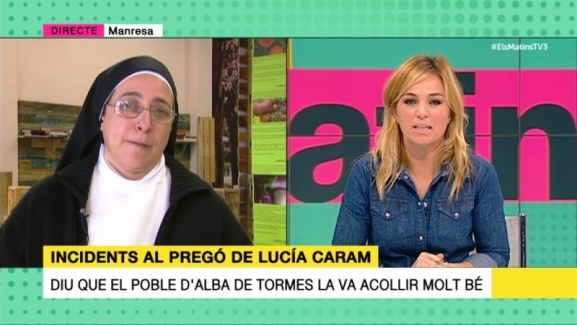"Aquí tenéis el momento en el que un grupo de españolistas increpaban a la religiosa Sor Lucía Caram mientras leía el pregón en Alba de Tormes, un pueblo de 6.000 habitantes de la provincia de Salamanca", más o menos así comienza la intervención en catalán de la presentadora de este espacio, que posteriormente entrevista a la monja contemplativa.