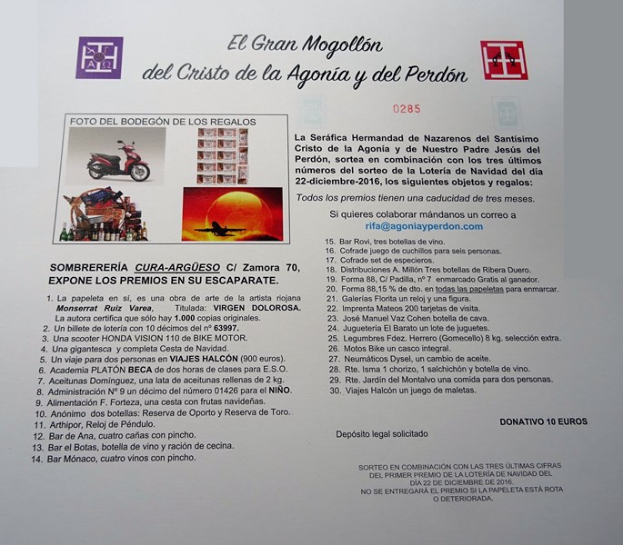 La Seráfica Hermandad Jesús del Perdón ha puesto en marcha una iniciativa para recaudar fondos con los que pagar la imagen de una Virgen.Se trata del sorteo denominado 'El gran mogollón'.