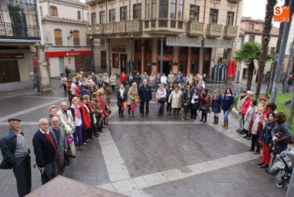 La Plaza Mayor de Alba de Tormes congregó a unas setenta personas convocadas por la Junta Local de la Asociación Española Contra el Cáncer con motivo del Día Internacional de la Lucha contra el Cáncer de Mama, conformaron un lazo humano. En la iniciativa participaron tanto hombres como mujeres de la villa ducal.