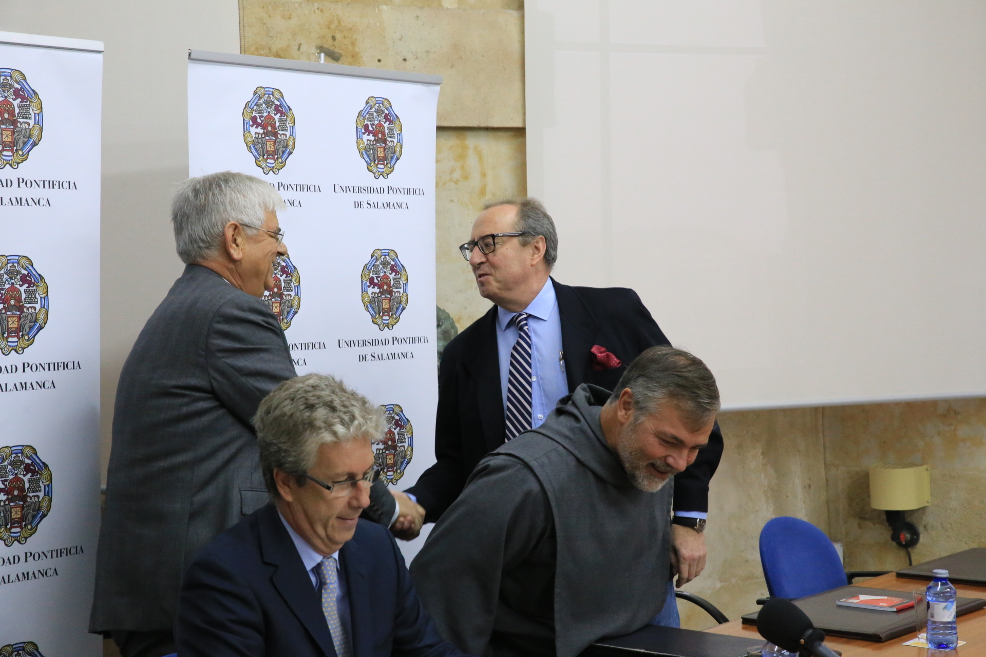 P. Laurent Mazas, director del 'Cortile dei Gentili', ha sido el encargado de realizar la apertura, siguiendo con una mesa redonda en la que han intervenido Pablo García, consejero delegado de LIMCASA; Ángel Losada, catedrático de Comunicación Corporativa de la UPSA, y José Luis Fernández, catedrático de la Universidad Pontificia Comillas en Madrid, quien ejercerá, en este caso, de moderador de la sesión.