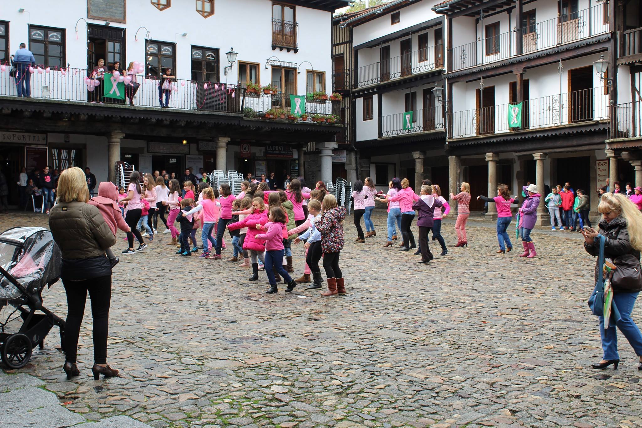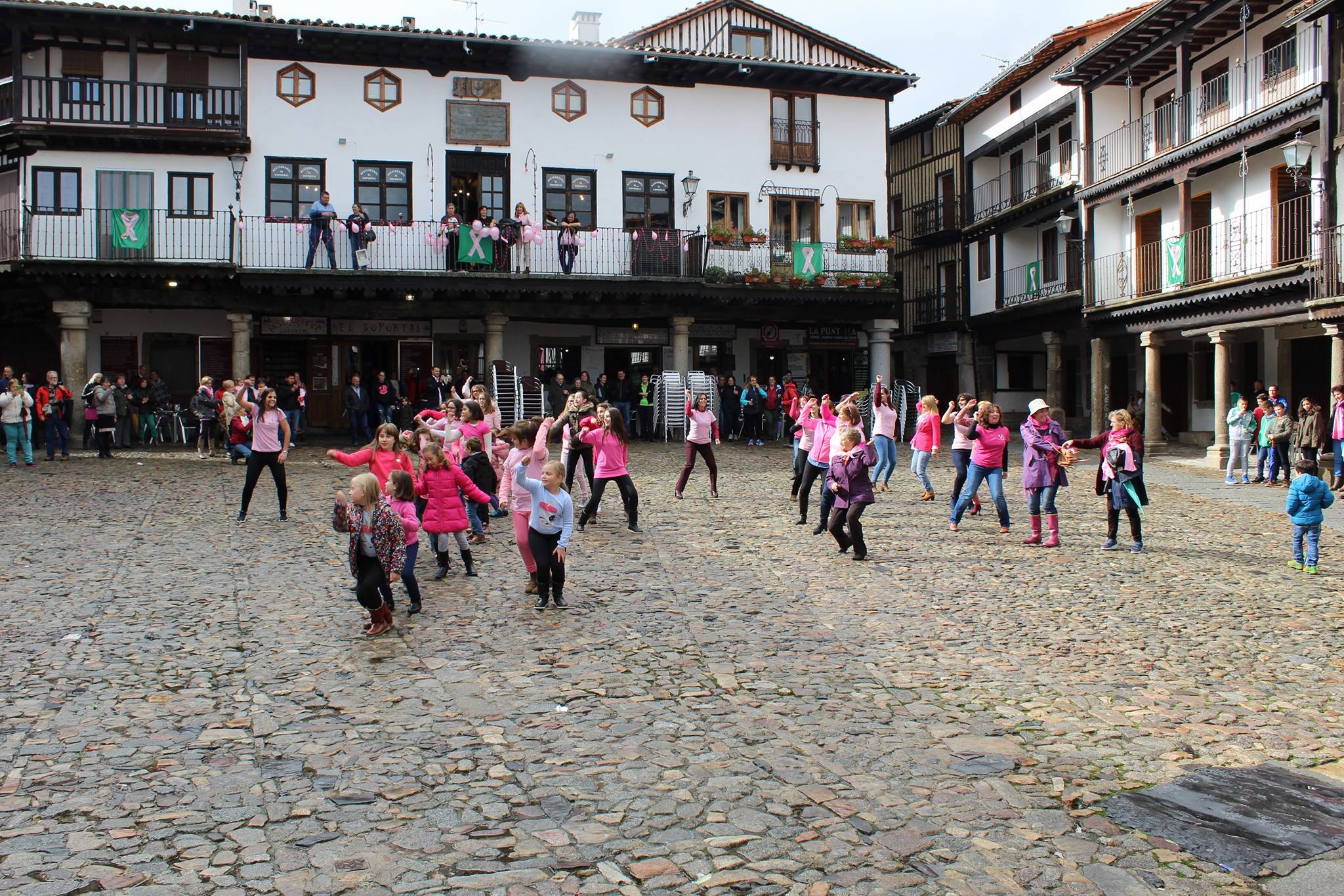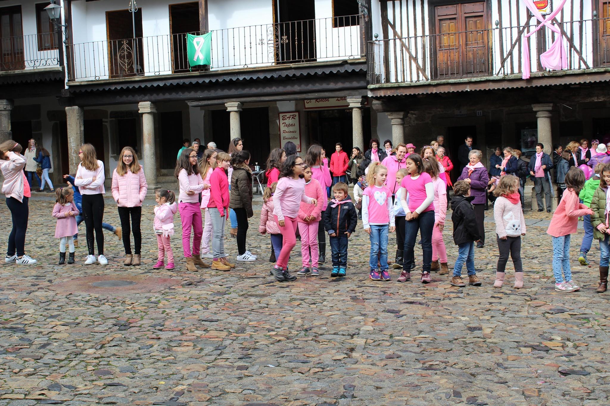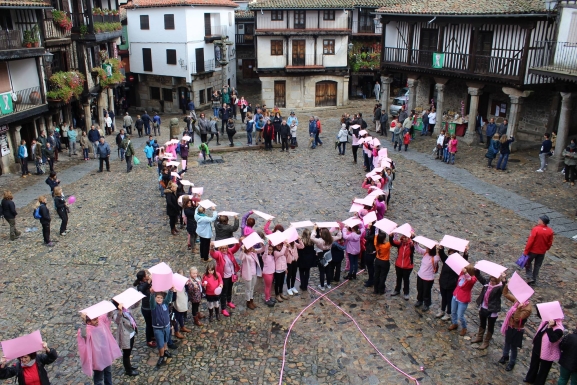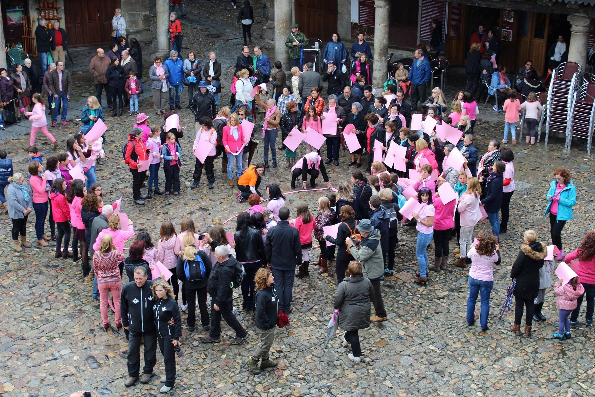 sistió en una actuación de Zumba ofrecida por una treintena de voluntarios. A continuación, más de un centenar de personas vestidas con el color rosa formaron un gran lazo en el centro de la plaza Mayor. De esta manera, La Alberca muestra apoyo y solidaridad con la numerosas víctimas del cáncer, especialmente el de mama, que es una de las mayores causas de mortalidad en nuestro país.