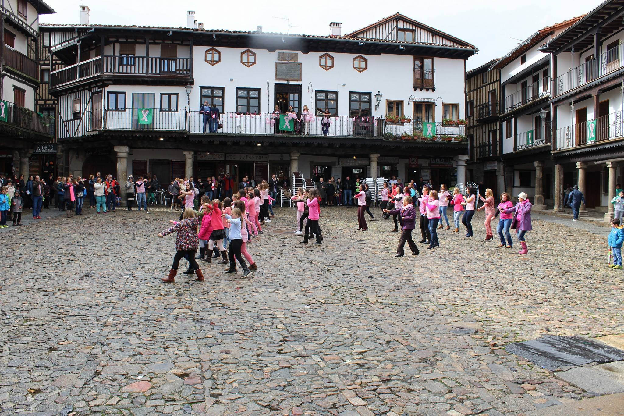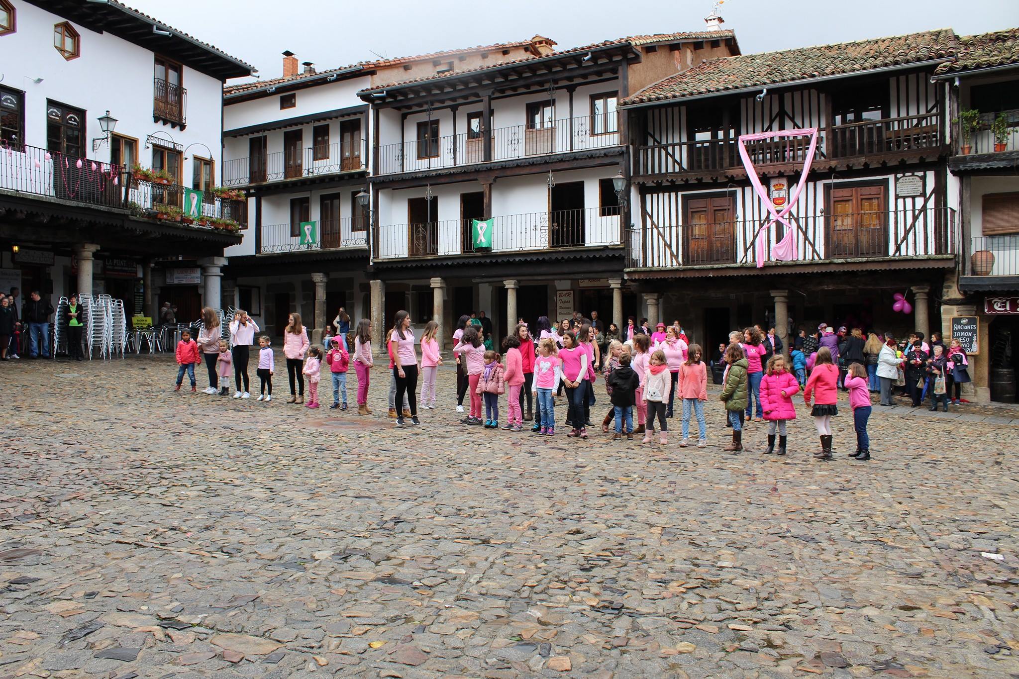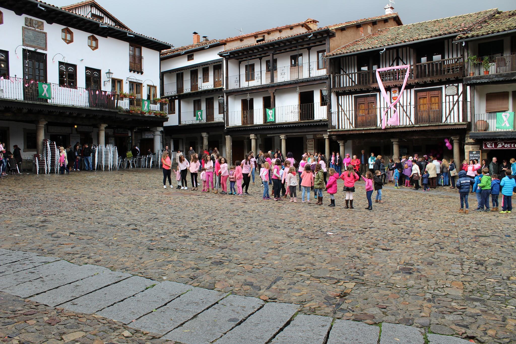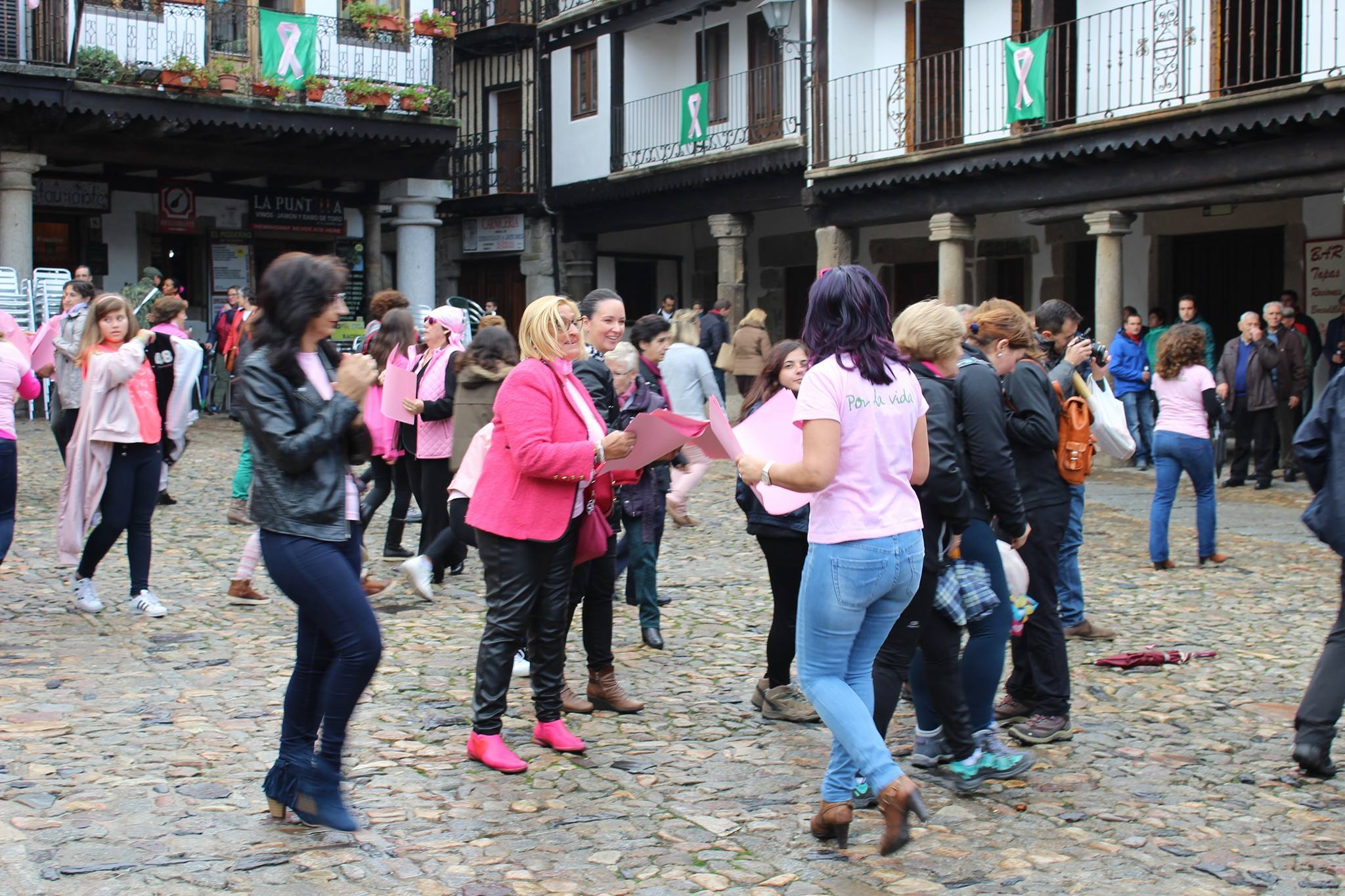 sistió en una actuación de Zumba ofrecida por una treintena de voluntarios. A continuación, más de un centenar de personas vestidas con el color rosa formaron un gran lazo en el centro de la plaza Mayor. De esta manera, La Alberca muestra apoyo y solidaridad con la numerosas víctimas del cáncer, especialmente el de mama, que es una de las mayores causas de mortalidad en nuestro país.