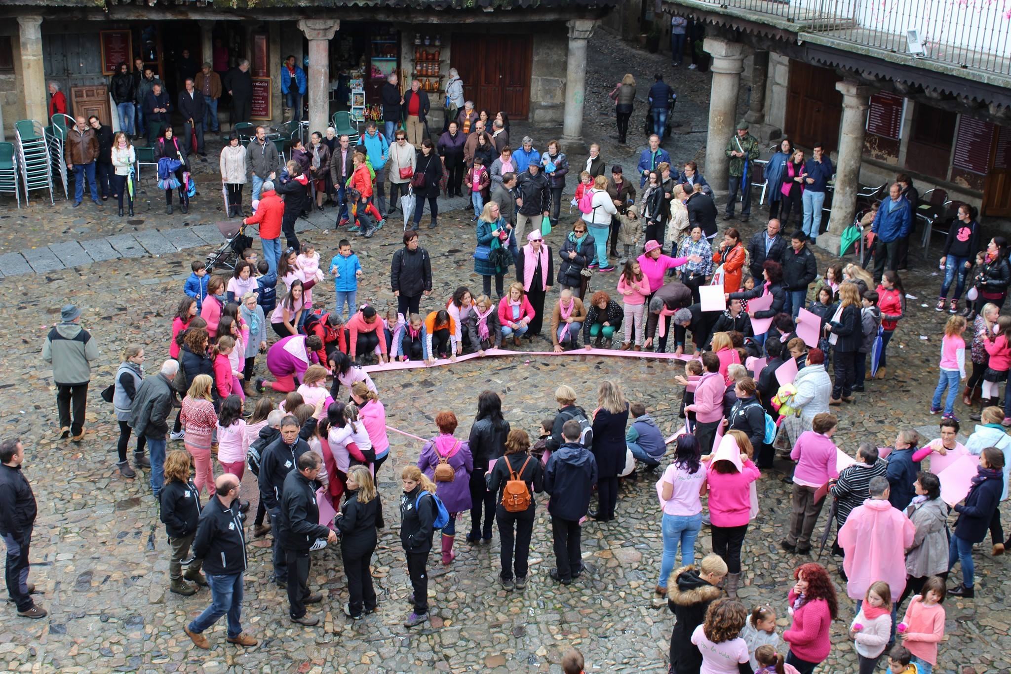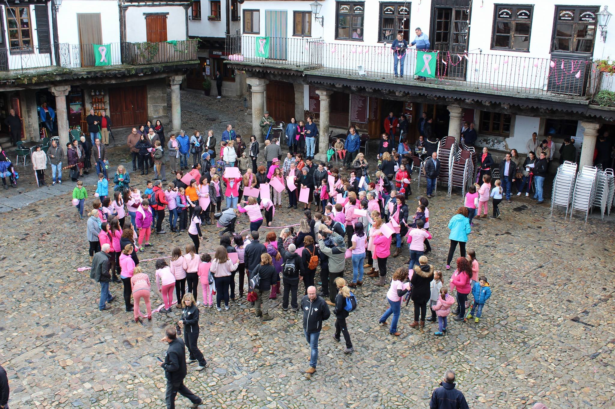 LA ALBERCA | La plaza Mayor acogió los actos conmemorativos del Día Mundial del Cáncer de Mama con la creación de un lazo gigante