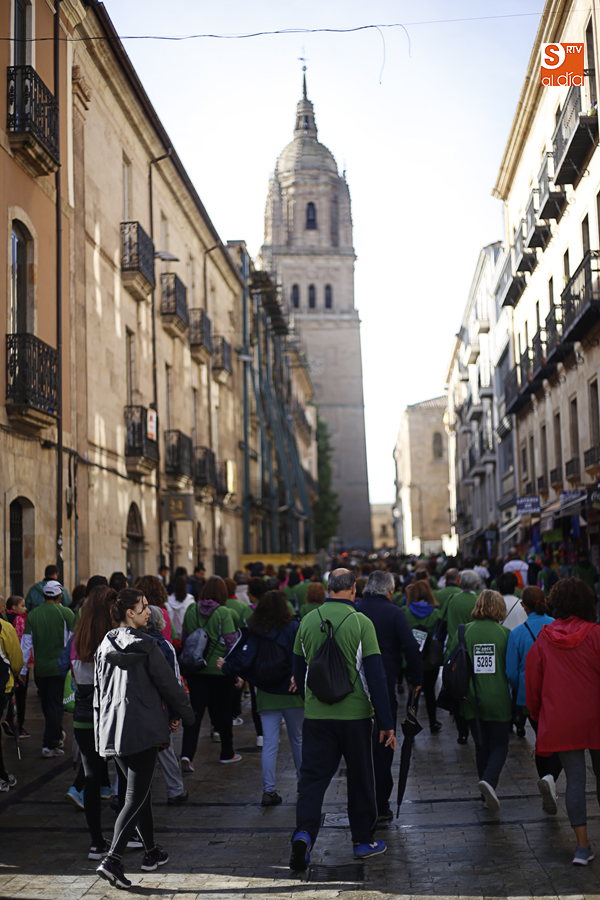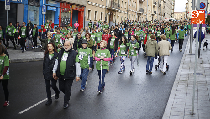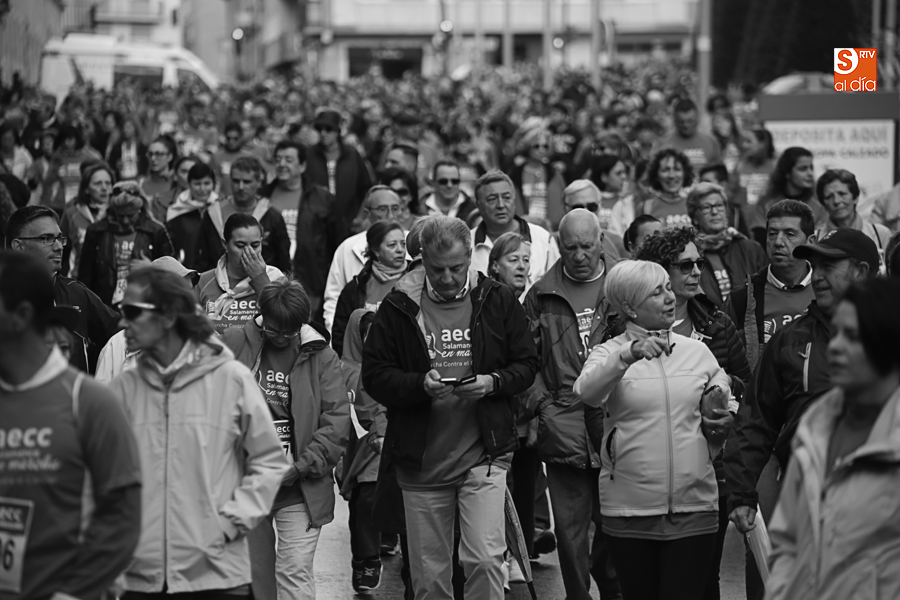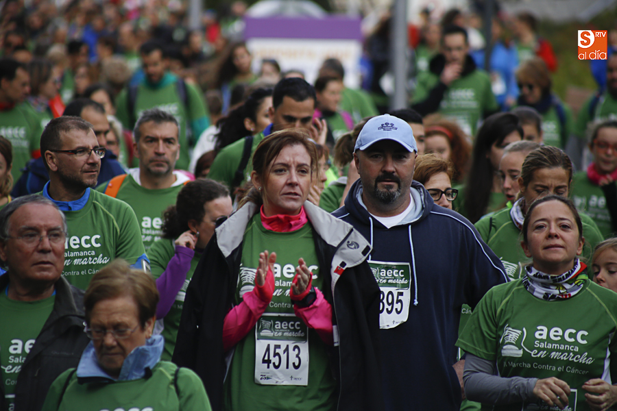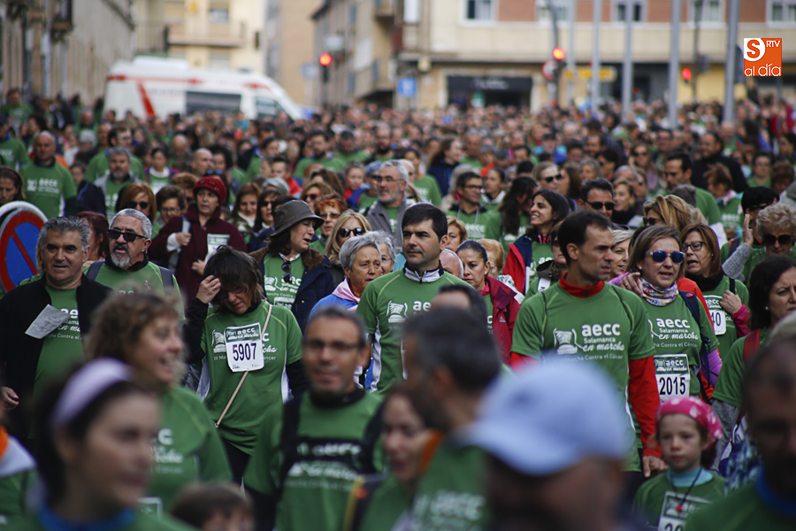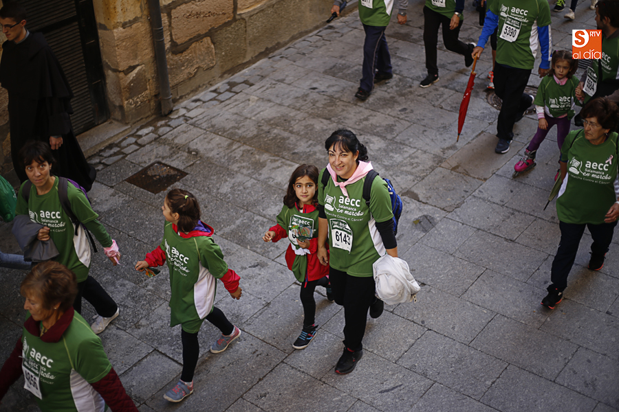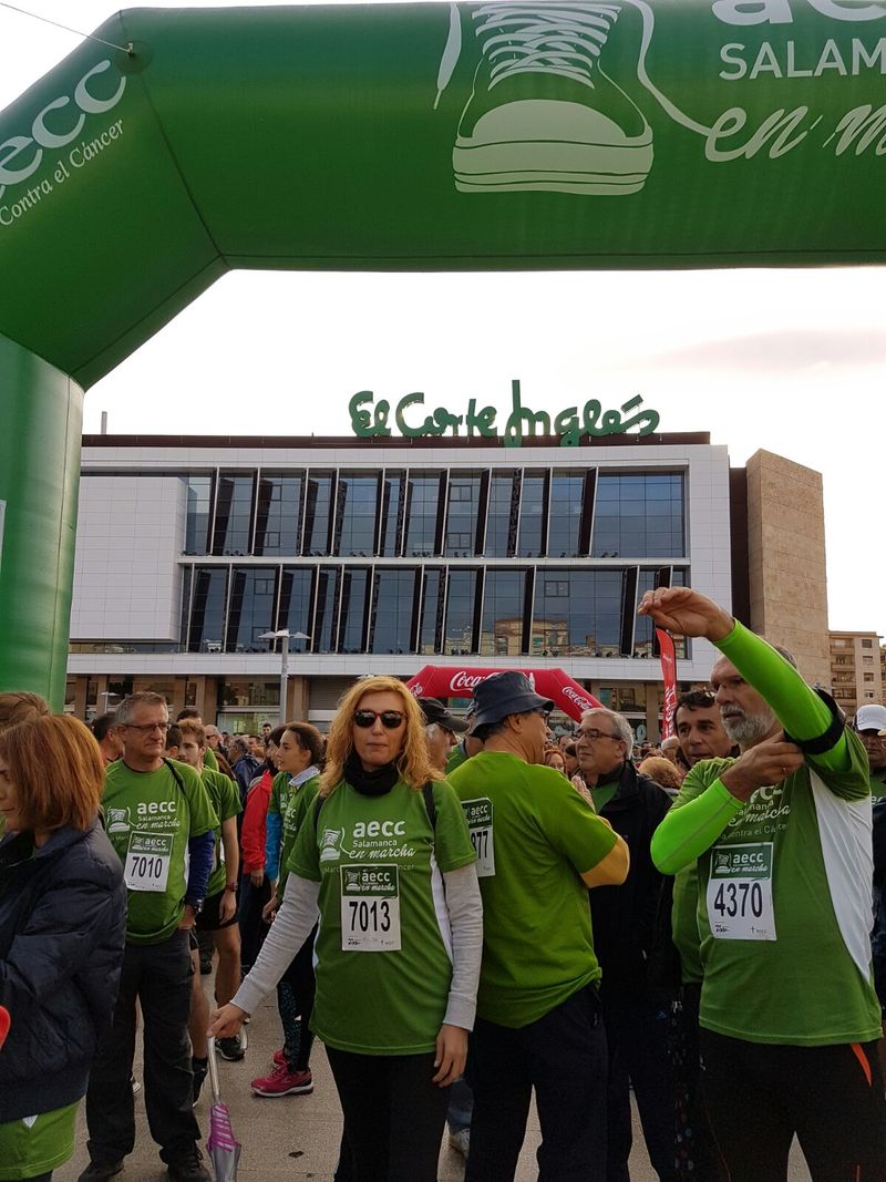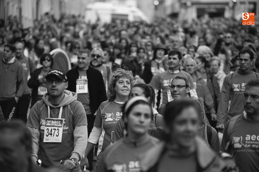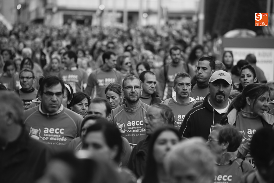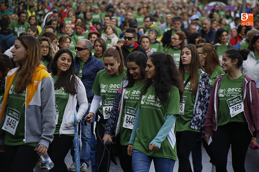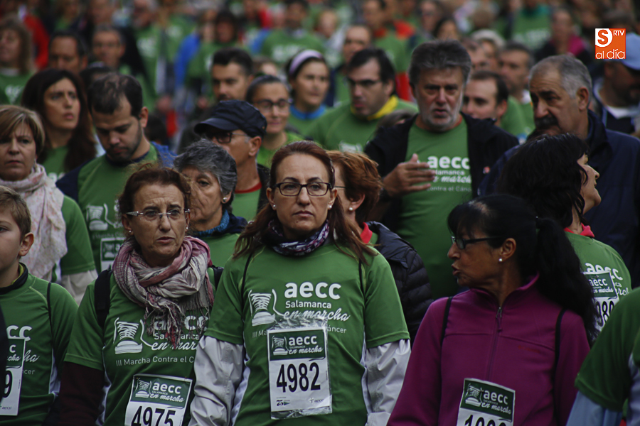 La Asociación Española Contra el Cáncer ha celebrado este domingo la tercera edición de la Marcha contra esta enfermedad, un encuentro con más de 8.000 participantes, cuyos beneficios irán a la AECC salmantina. El objetivo es financiar la investigación sobre esta patología, que padecerán a lo largo de su vida una de cada tres personas, según indicó Inmaculada Rodríguez Sánchez, presidenta del AECC Salamanca.