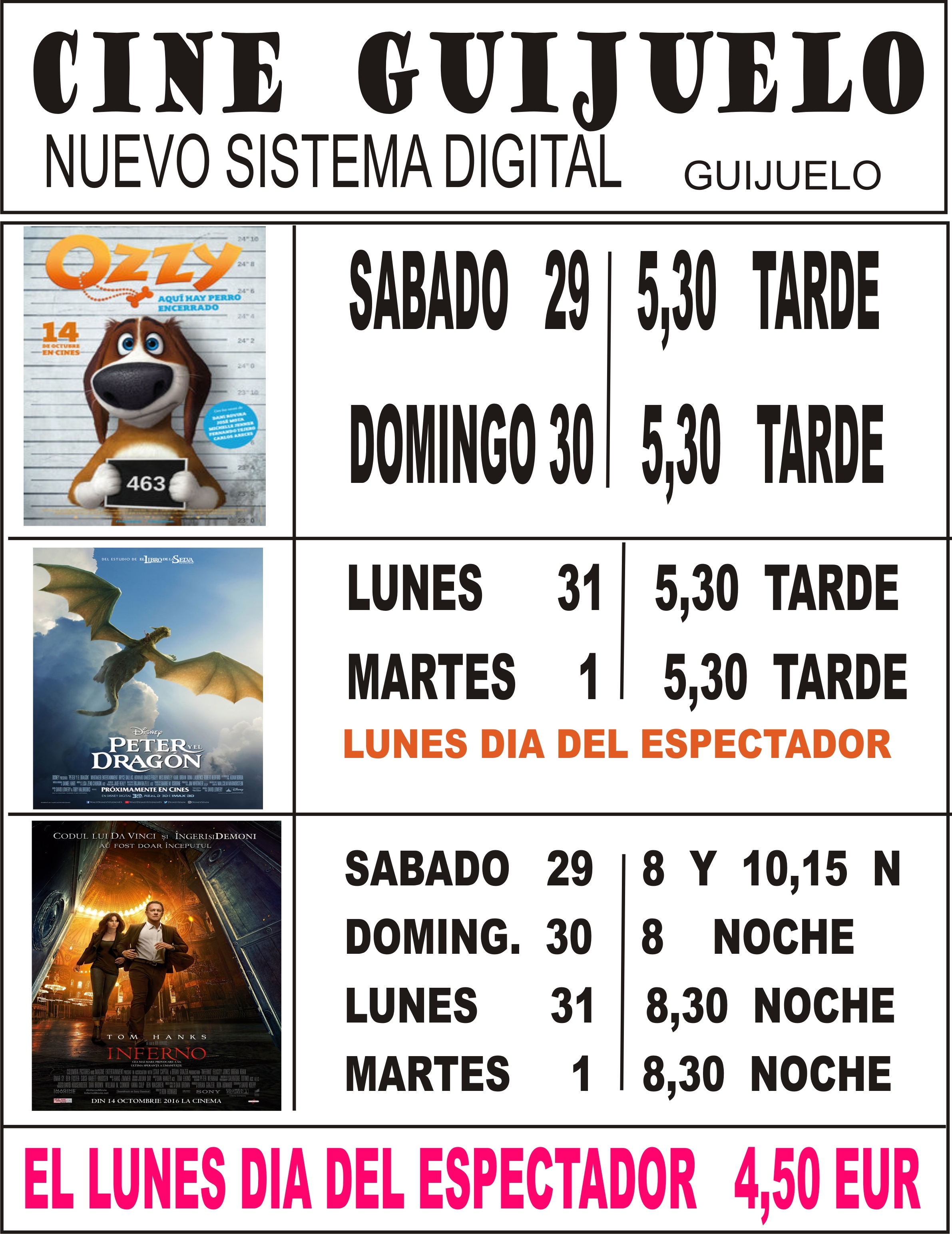 GUIJUELO | Ozzy, Peter y el Dragón e Inferno son los títulos de una cartelera que se extenderá hasta el martes 1 de noviembre