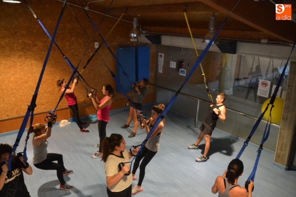 El Centro Acuático y Deportivo de Ciudad Rodrigo desarrolló en la tarde del martes la primera sesión de la nueva modalidad de ejercicio que ha incorporado, el denominado entrenamiento TRX, un tipo de fitness fuera del agua basado en la suspensión de un arnés.