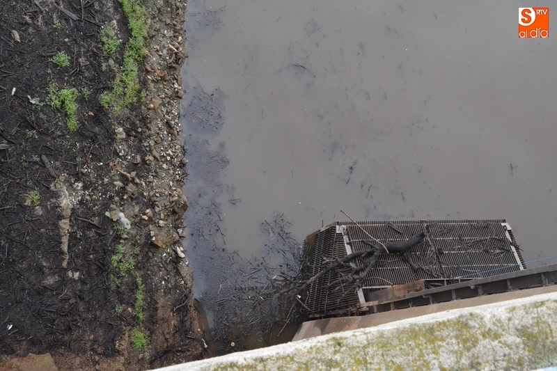 Al evacuar el pantano por su punto más bajo, el agua sale muy sucia como se puede comprobar aguas abajo