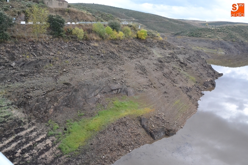 El motivo del bajo nivel que ha presentado el pantano es el mismo que el año pasado por estas fechas, cuando se redujo el volumen para a su vez permitir que quedase despejada lo máximo posible de agua la zona del Risco de Martiago, para que así se lleve a cabo la construcción de un nuevo puente por parte de la Diputación de Salamanca.