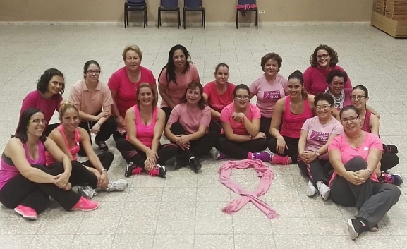 Atabiadas de rosa, un grupo de mujeres cantalpineses mostró su apoyo a las afectadas por el cáncer de mama. El gesto solidario se celebró en la sesión de 'zumba' desarrollada por las mujeres que asisten a esta actividad los lunes.