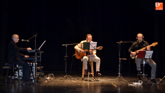 'Concierto 3' y su recital de poesía universal cantada han subido a las tablas un amplio repertorio del poemario universal musicalizado a través de la voz y la guitarra de Ángel Luis Delgado, la armónica, bajo y voz de Ángel Rodríguez y los teclados y el gusto vocal de Emilio Monte