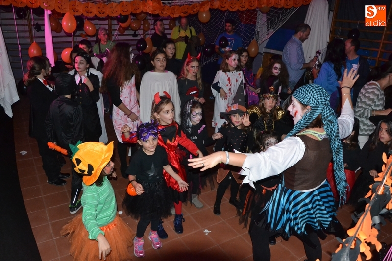 La fiesta tuvo lugar en el gimnasio del Colegio, que fue totalmente transformado por un grupo de padres y madres, tapando los grandes ventanales, o creando un túnel justo a la entrada. Buena parte de esos padres y madres iban disfrazados, al igual que todos los niños que se pasaron por el Colegio, que disfrutaron de una animada sesión de baile y de un convite.