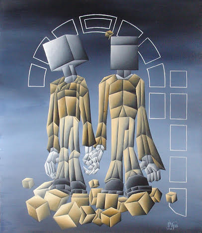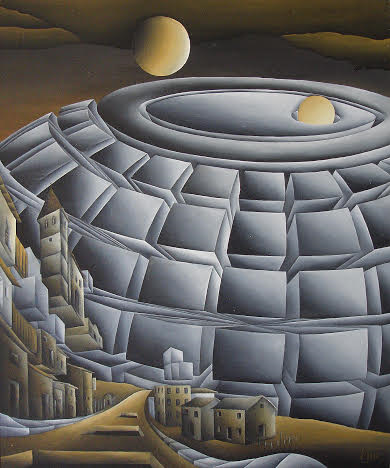Los objetos con los que trabaja son variados y cercanos al espectador: casa, mundos, figuras todos bailando en ese espacio que parece que no se van a sujetar y en cambio se acoda cada uno en su sitio y su momento. Perspectiva , luz, líneas convergentes, todo ello armoniza una obra digna de una futura gran exposición.
