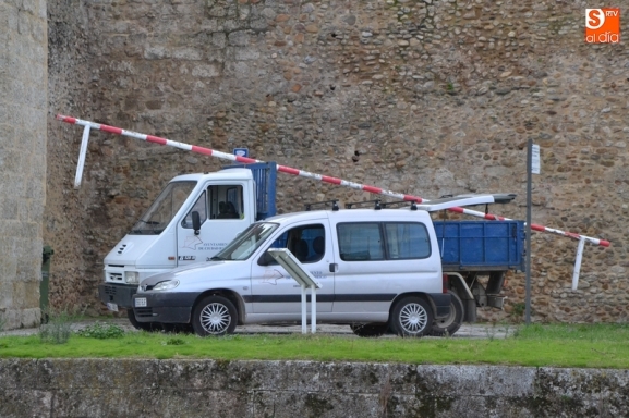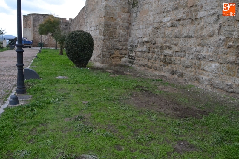 Asimismo, estos operarios también procedieron a la retirada de varios elementos decorativos, alusivos a los conflictos bélicos que ha albergado Ciudad Rodrigo a lo largo de su historia, situados en el Paseo Fernando Arrabal, junto al paramento de la muralla. En la imagen inferior se puede ver a qué elementos nos referimos, y en la siguiente imagen, a cómo luce ahora este punto.