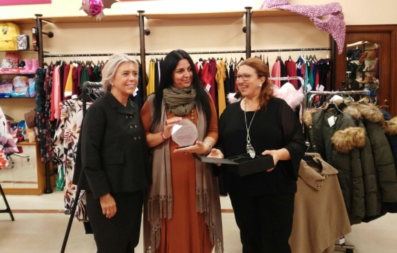 En este concurso resultó ganador ?fue el que obtuvo más apoyos en la votación popular que se realizó- la tienda Quattro Moda situada en la calle Madrid. Hasta allí se acercaron Inmaculada Rodríguez y la presidenta de la AECC en Ciudad Rodrigo, Verónica María Sastre, para hacerle entrega a su responsable de un trofeo acreditativo. Asimismo, recibirá dos invitaciones para asistir a la cena benéfica que celebrará la AECC en los primeros meses del año que viene.
