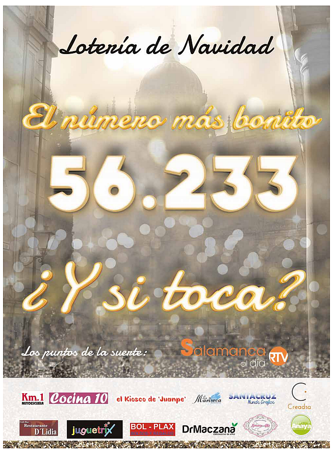 ¿Y si toca? Este año, el grupo de Comunicación de SALAMANCArtv AL DÍA acaricia la suerte con el número de lotería de Navidad 56.233, el más bonito.