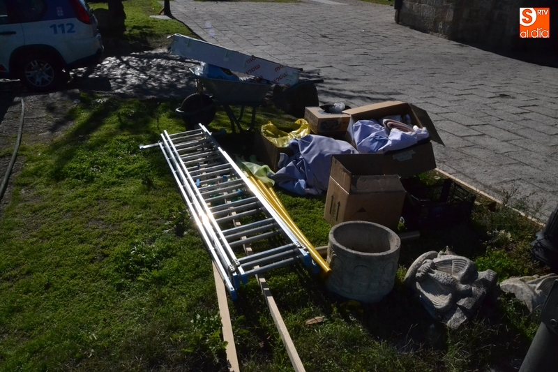 Hasta la jornada del miércoles no se comenzarán a rodar escenas de la película Que baje Dios y lo vea en el foso de la parte izquierda de la Rúa del Sol de Ciudad Rodrigo, pero desde la mañana del lunes ya hay movimiento en el lugar, con los preparativos para hacer posible ese rodaje.