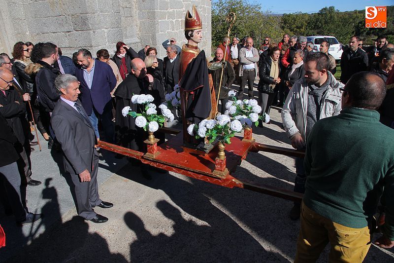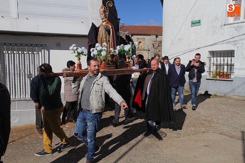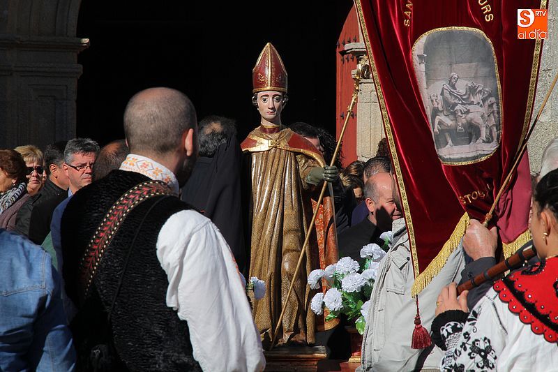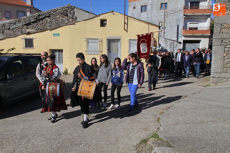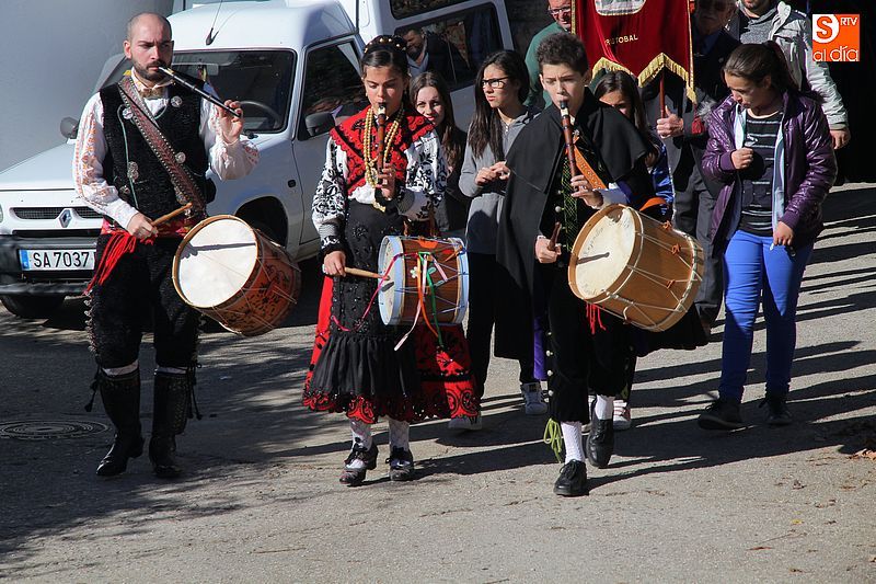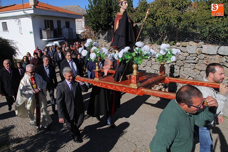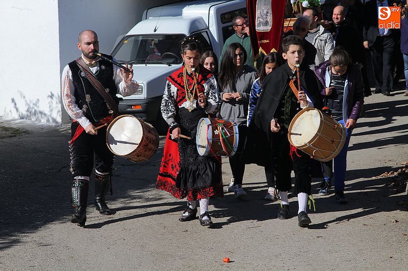 Los vecinos de Cristóbal celebraron ayer, domingo 13 de noviembre, el día más nutrido de los festejos, que además suponía el cierre de la programación. Por la mañana se cumplió con los homenajes religiosos a San Martín de Tours en la iglesia parroquial. Cientos de personas se dieron cita en el templo para participar en la misa cantada con la música de tres tamborileros. Al final del oficio religioso y antes de la procesión, se procedió al acto de hermanamiento entre Cristóbal y Valdelacasa. El alcalde de esta ú